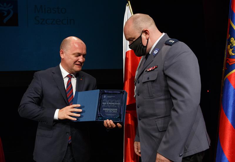 Grono osób wyróżnionych tytułem Ambasador Szczecina powiększyło się w poniedziałek o saksofonistę jazzowego Tomasza Licaka oraz policjanta i pasjonata historii kom. dr. Marka Łuczaka. Wyróżnienia wręczono im podczas uroczystej sesji Rady Miasta Szczecina.