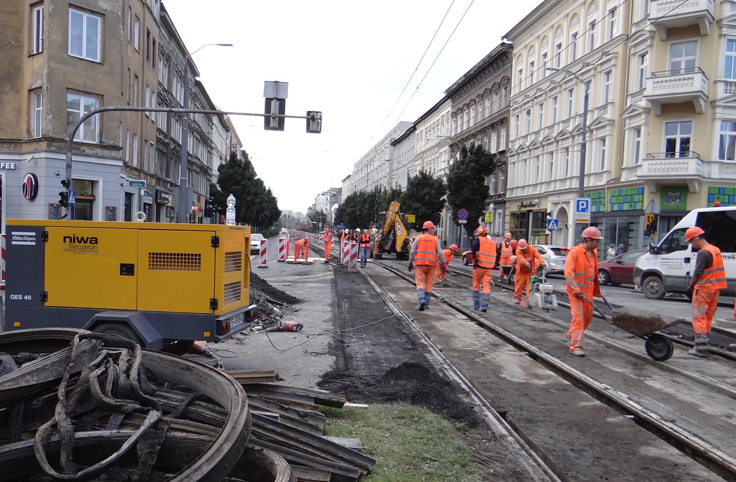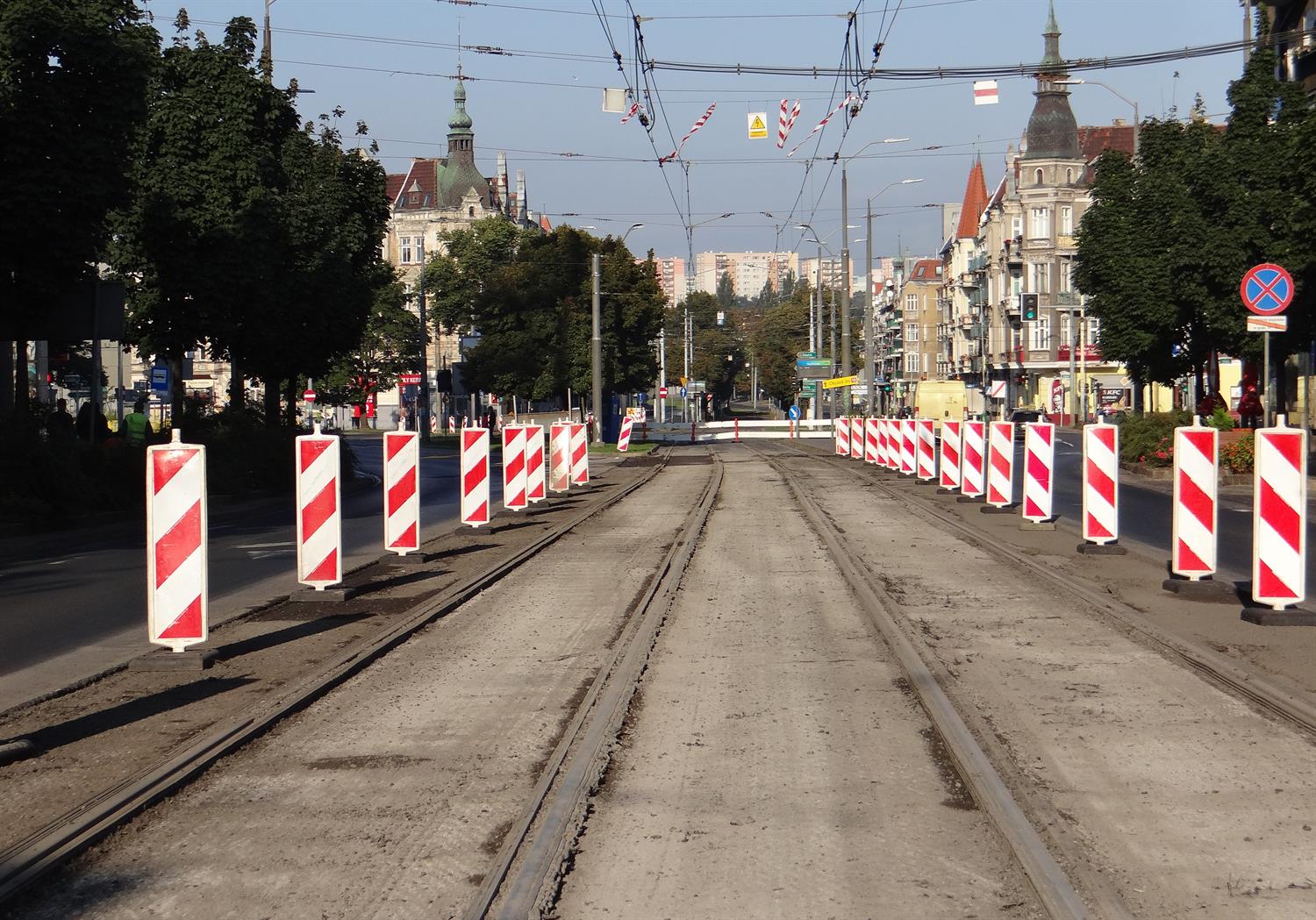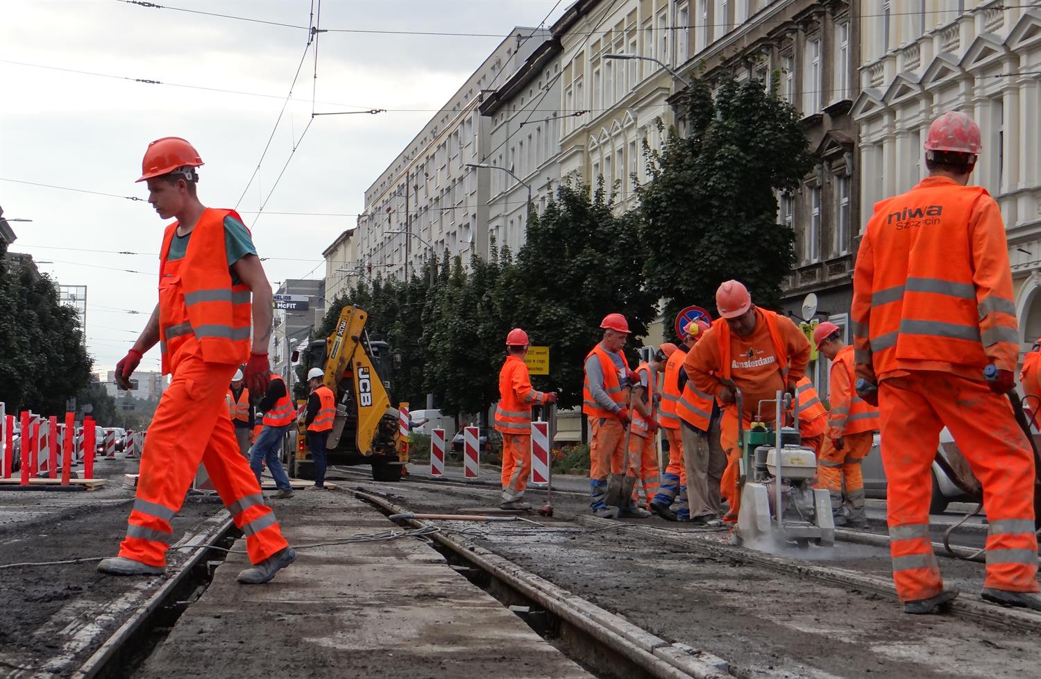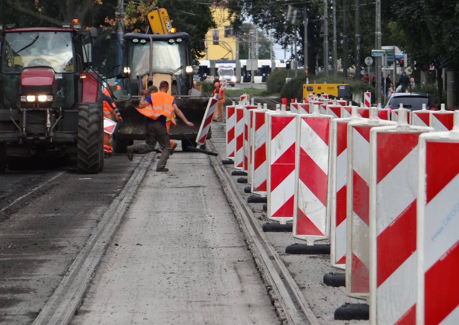 Brygady robotników szczecińskiej spółki Niwa, wykonawcy remontu, ruszyły od wczesnego rana w sobotę do skuwania asfaltu w przytorzach wewnętrznych pasów ruchu dla samochodów i w międzytorzach na całej długości. W niedzielę, po odkryciu podbudowy, trwał m.in. demontaż starych gumowych otulin szyn.