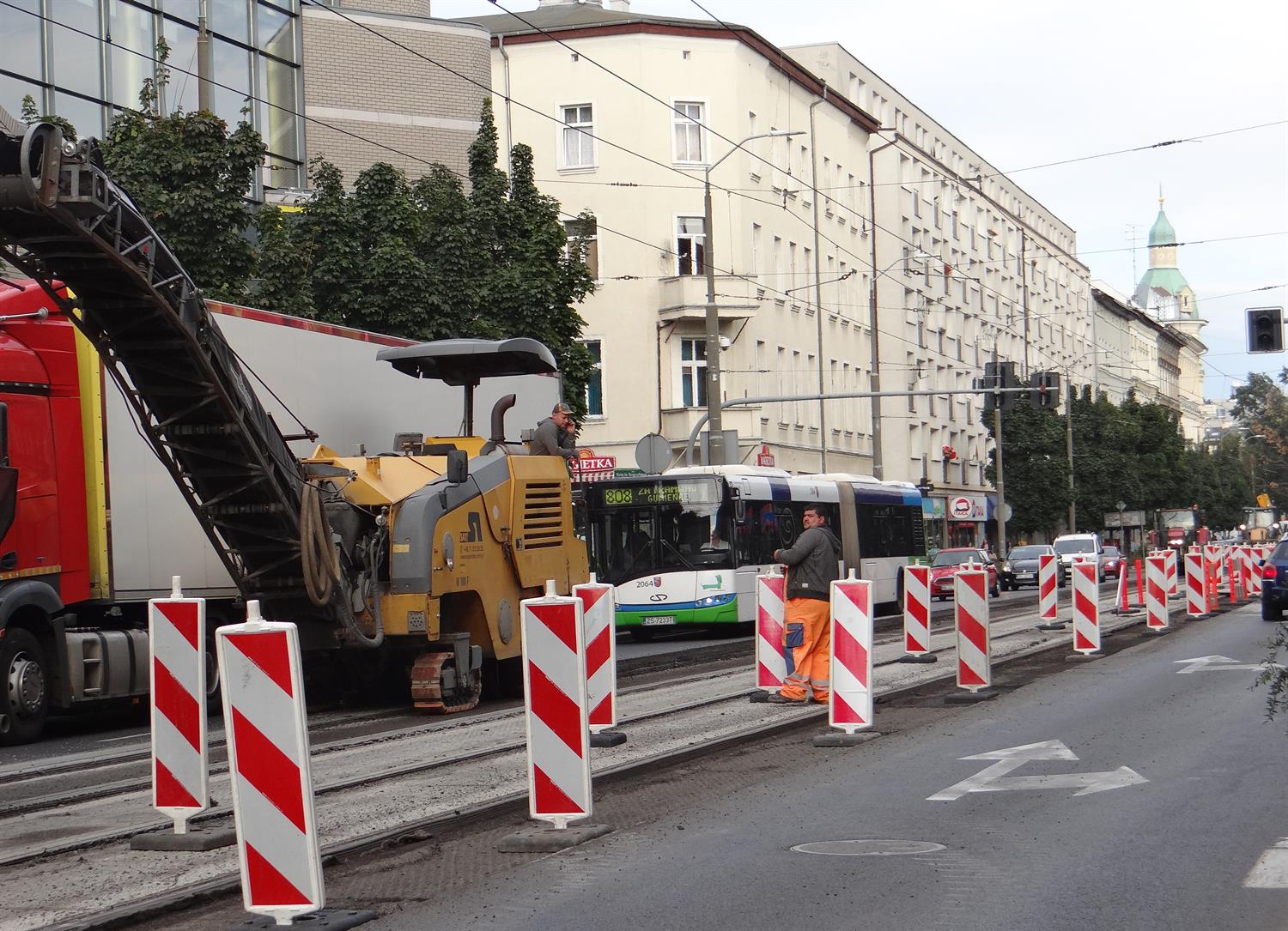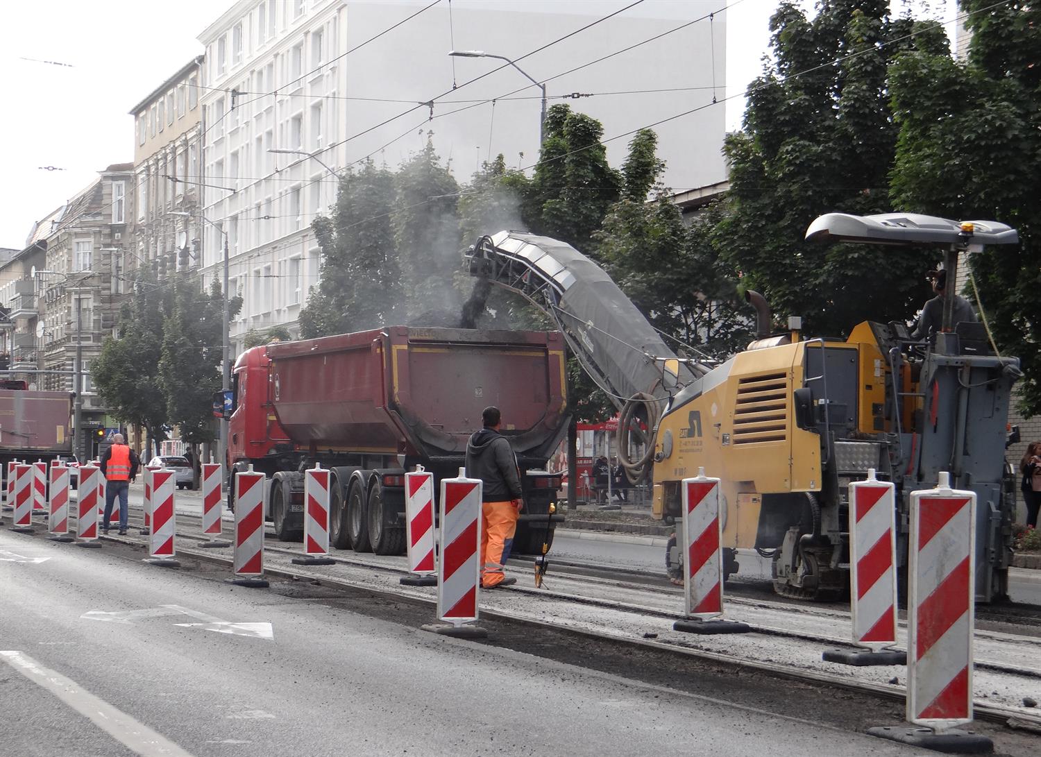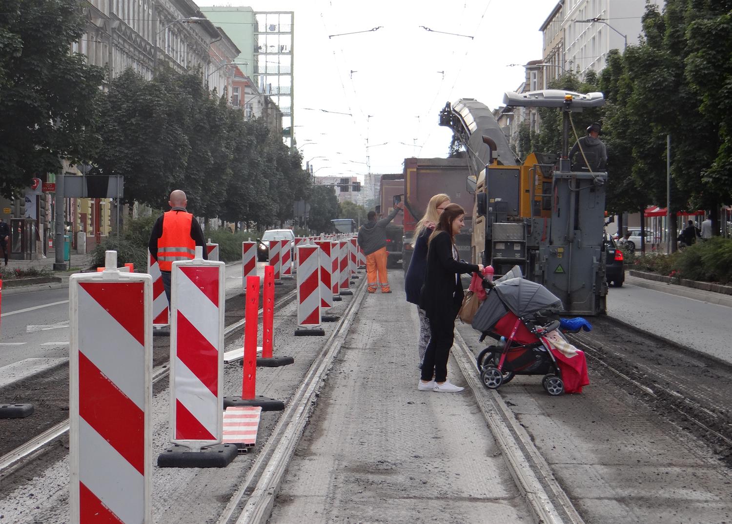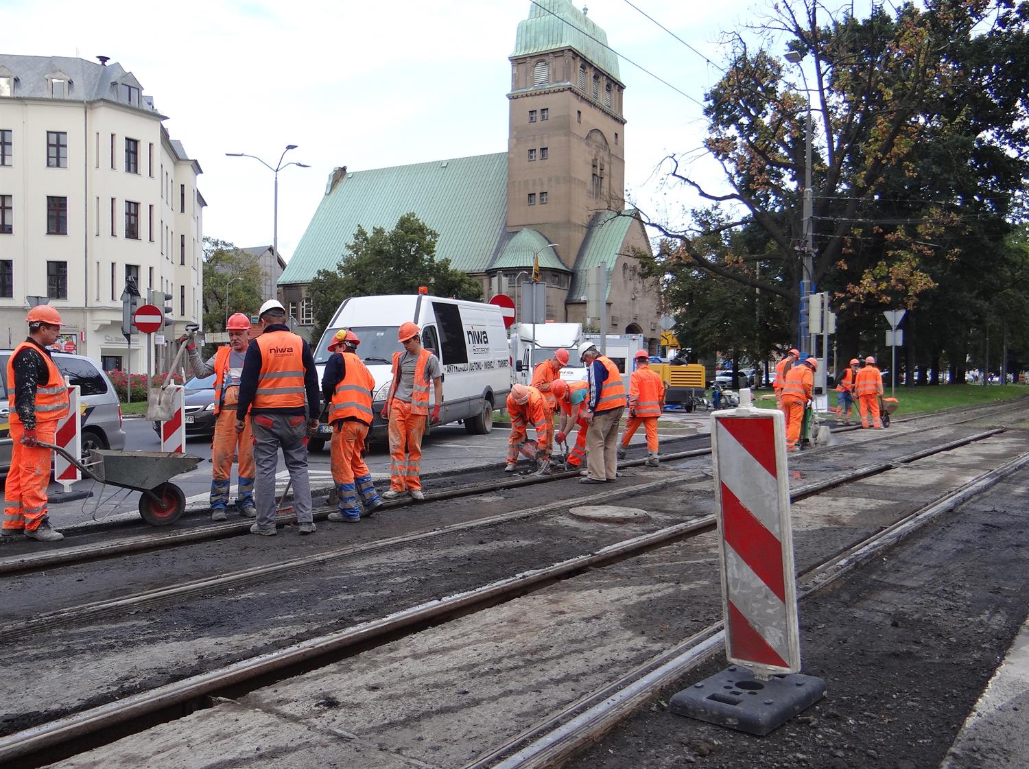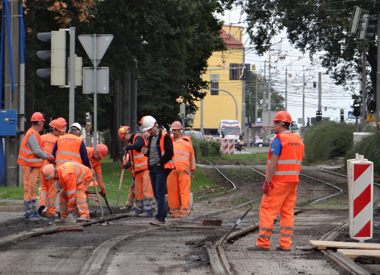Brygady robotników szczecińskiej spółki Niwa, wykonawcy remontu, ruszyły od wczesnego rana w sobotę do skuwania asfaltu w przytorzach wewnętrznych pasów ruchu dla samochodów i w międzytorzach na całej długości. W niedzielę, po odkryciu podbudowy, trwał m.in. demontaż starych gumowych otulin szyn.