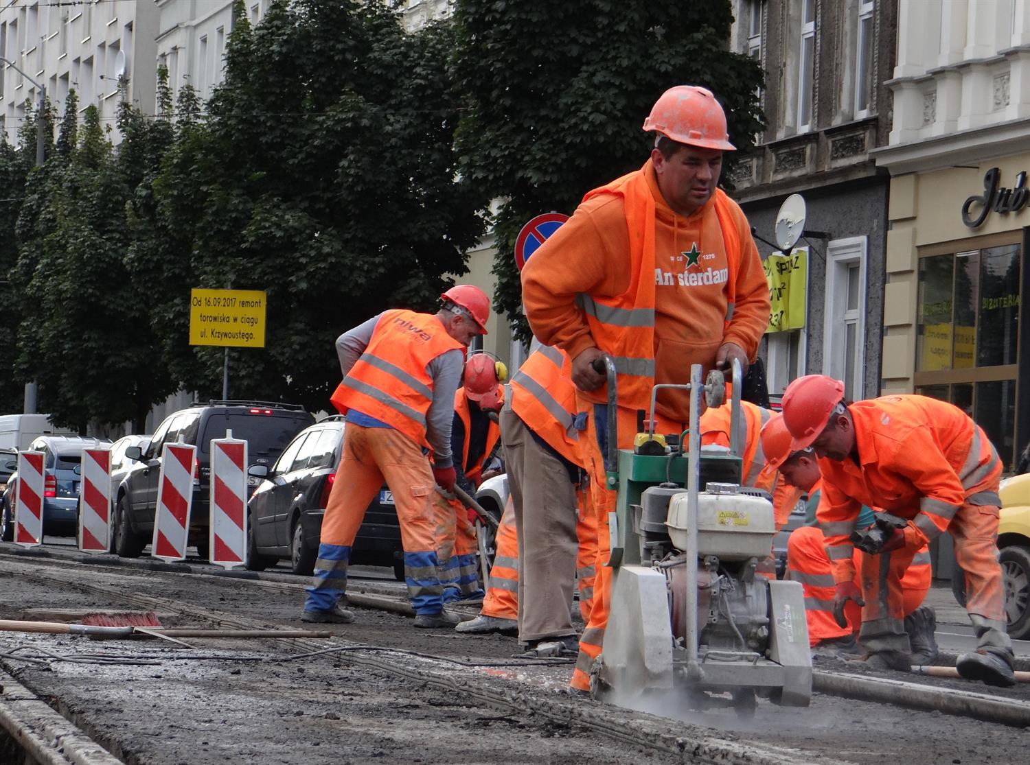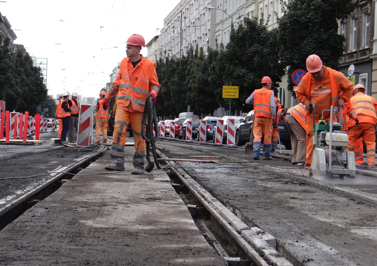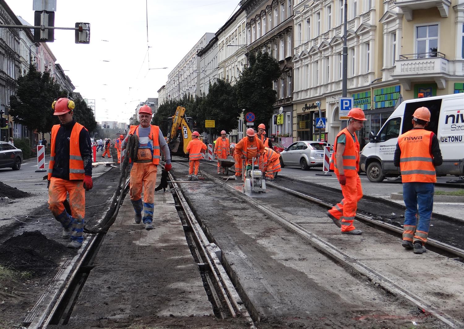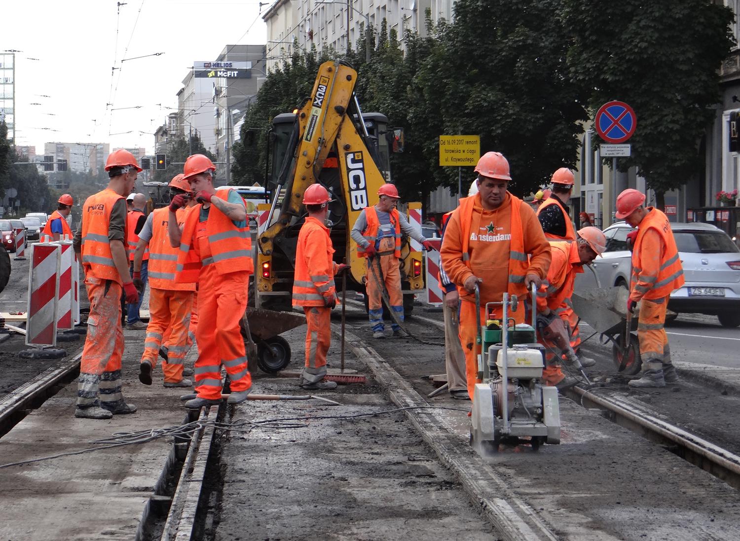 Brygady robotników szczecińskiej spółki Niwa, wykonawcy remontu, ruszyły od wczesnego rana w sobotę do skuwania asfaltu w przytorzach wewnętrznych pasów ruchu dla samochodów i w międzytorzach na całej długości. W niedzielę, po odkryciu podbudowy, trwał m.in. demontaż starych gumowych otulin szyn.