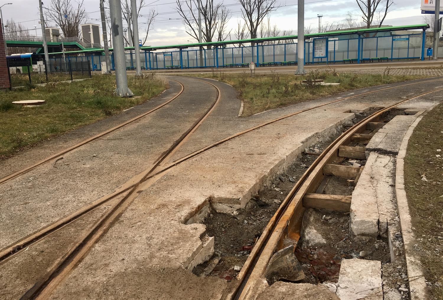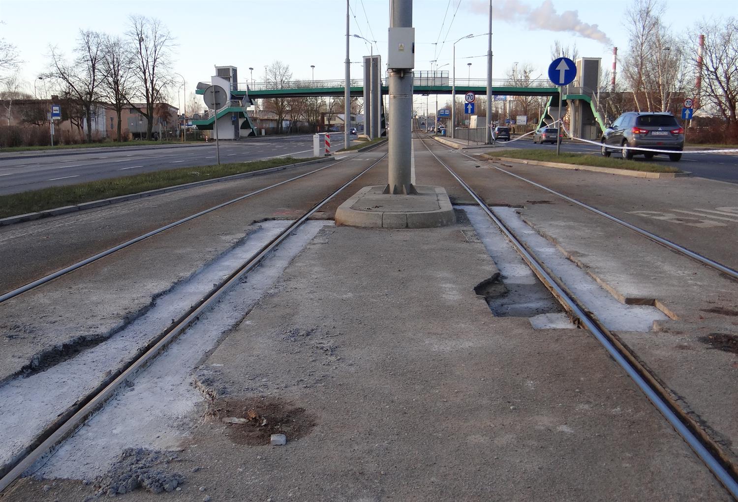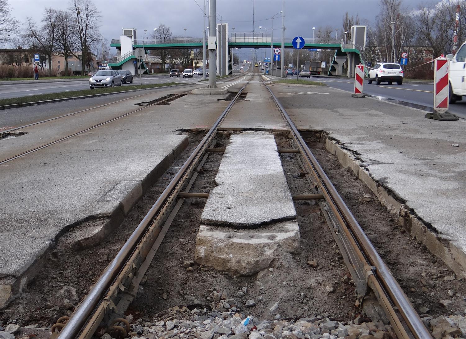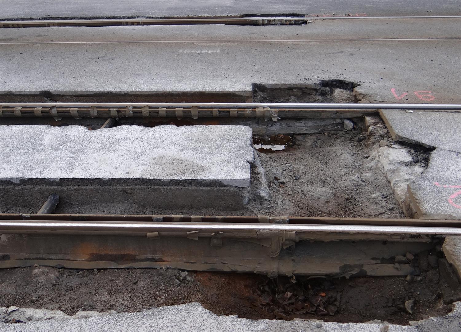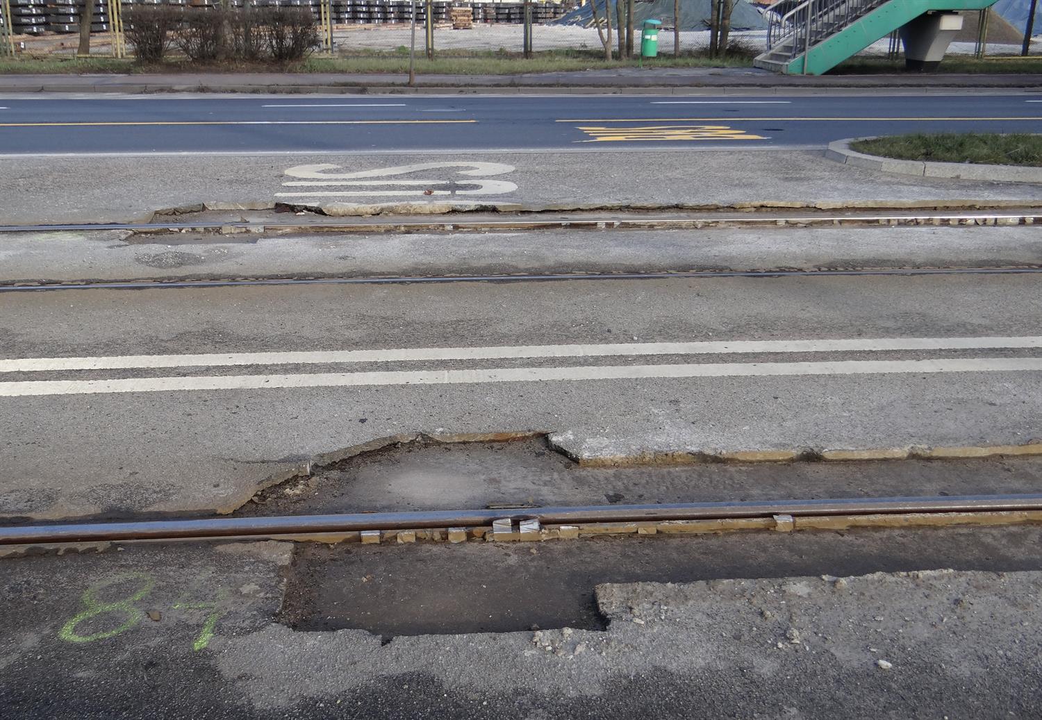 Odkrywki, wypełnione prowizorycznie drewnianymi podkładami i deskami mocowanymi klinami, są nadal w około jednej trzeciej miejsc na odcinkach, w których nowe szyny popękały zimą na przełomie lat 2015/2016, nawet nie po pół roku od oddania ich do eksploatacji. Odkrywki pojawiły się też na trzech torach manewrowych objazdowych prowadzących do nieużytkowanych obecnie na co dzień peronów postojowych na nawrotach w obrębie pętli na Basenie Górniczym (tramwaje korzystają z nich jedynie w sytuacjach awaryjnych). Do tego dochodzą jeszcze miejsca, gdzie po naprawach wciąż na załatanie czekają fragmenty wcześniej skuwanej po raz kolejny nawierzchni. Jest ich jeszcze ponad czterdzieści.