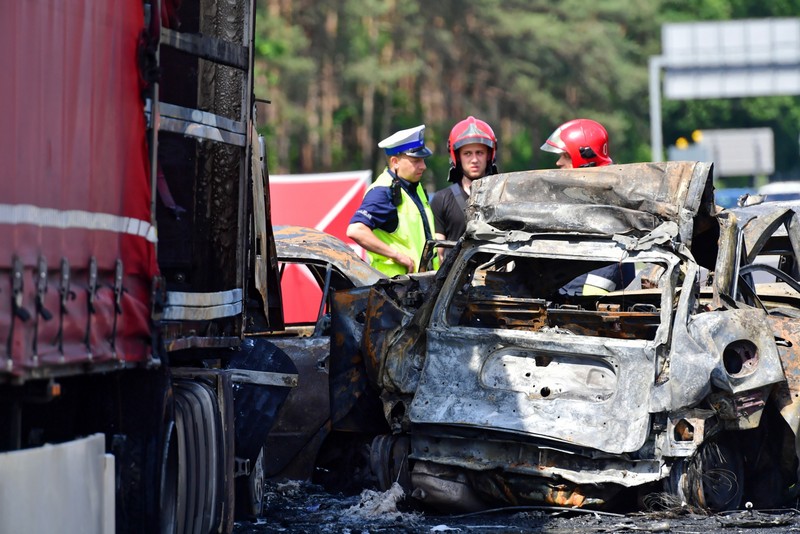 - Na miejsce wypadku zostało skierowanych pięć karetek i dwa śmigłowce Lotniczego Pogotowia Ratunkowego - relacjonuje Paulina Targaszewska, rzeczniczka Wojewódzkiej Stacji Pogotowia Ratunkowego w Szczecinie. - Na miejscu okazało się, że nie żyje sześciu z 22 uczestników zdarzenia. Ranne zostały cztery osoby dorosłe. Kobieta z urazem klatki piersiowej, głowy oraz kręgosłupa została przetransportowana do szpitala przy ul. Unii Lubelskiej. Dwie kolejne osoby dorosłe, z urazami kończyn górnych, zostały przewiezione do szpitala w Zdunowie. Natomiast kierowca TIR-a, choć w wypadku nie odniósł obrażeń, to został poważnie narażony na wdychanie chemicznych oparów będących efektem pożaru. Został więc przewieziony do szpitala Zdroje. W wypadku uczestniczyło również siedmioro dzieci, ale - na szczęście - są całe i zdrowe.