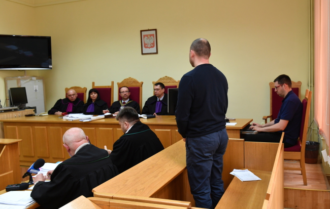 Na zdjęciu: Oskarżony Sebastian Z. na sali sądowej