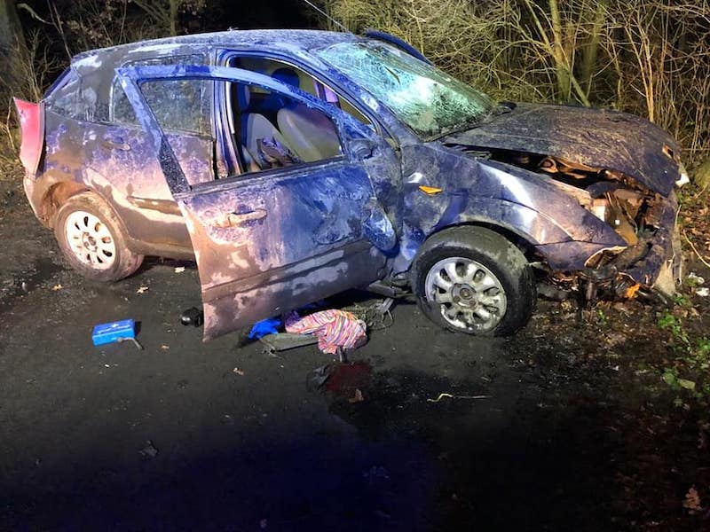 Młody kierowca, sylwestrowa noc, 20-letnie auto, zjechanie na pobocze - co tu mogło wyjść nie tak?