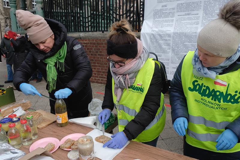 Zgromadzonym rozdawano ulotki z postulatami protestujących. Rolnicy domagają się m.in. wstrzymania i usunięcia negatywnych skutków niekontrolowanego importu towarów z Ukrainy takich jak m.in. zboże, rzepak, jaja i drób.