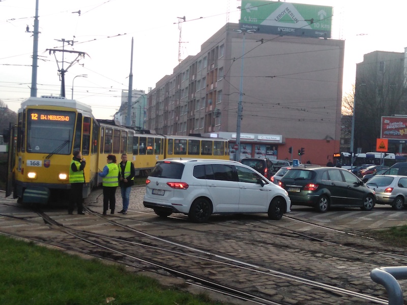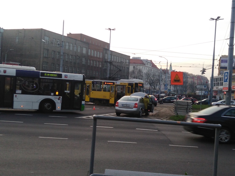 Na liniach tramwajowych opóźnienia sięgają kilkunastu minut. Tramwaje linii nr 11 i 12 zostały przekierowane ul. Krzywoustego i przez pl. Kościuszki.