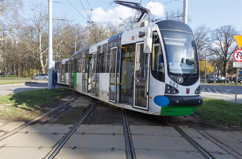 Tramwaj wypadł z szyn przy wjeździe na pl. Rodła