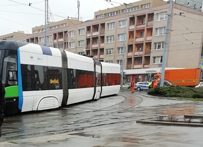 Tramwaj nr 10 o godz. 11.15 wypadł z torów na pl. Rodła w Szczecinie.