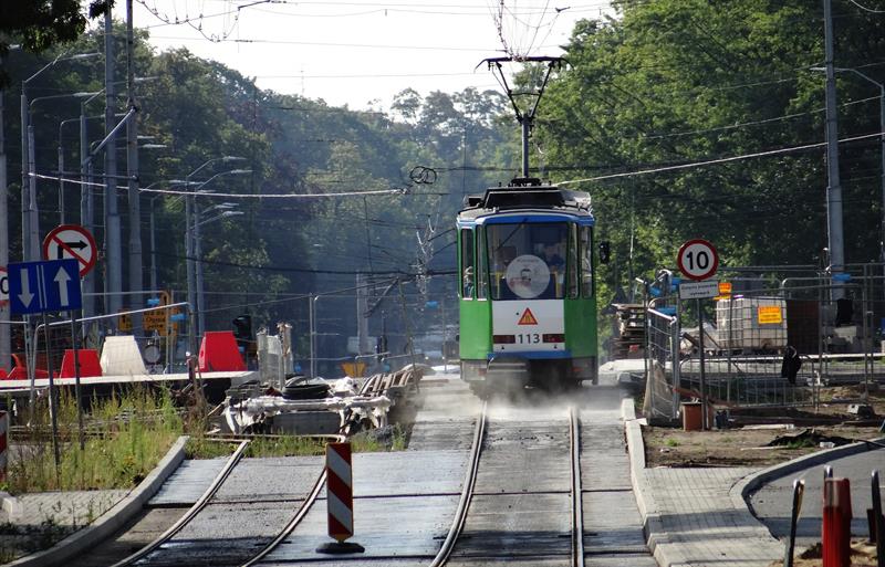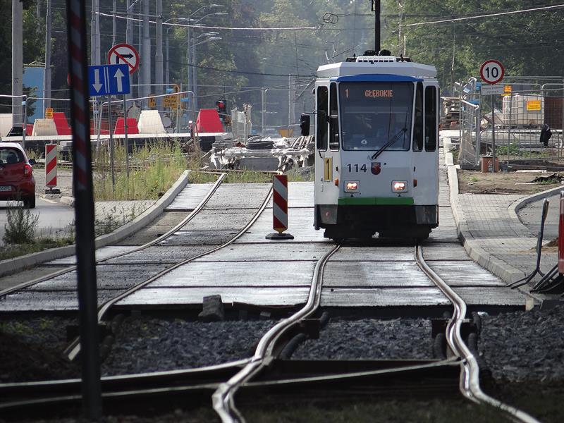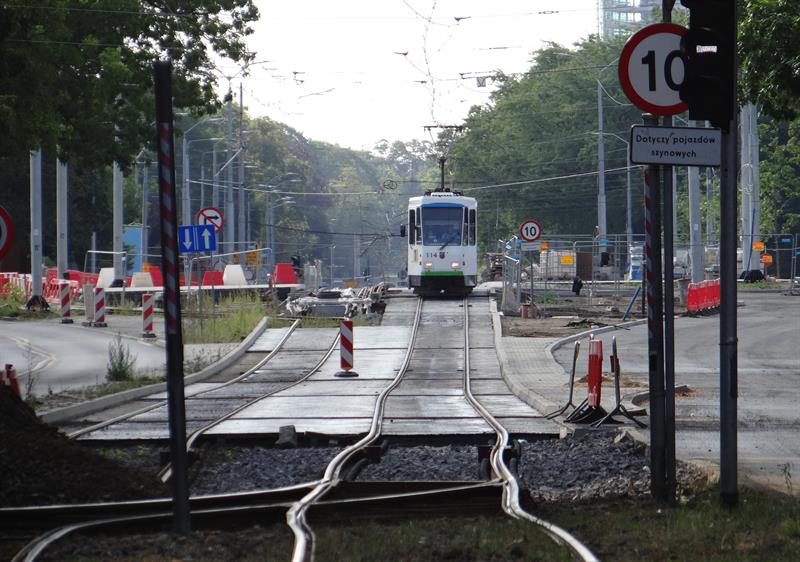 Po weekendowej przerwie w kursowaniu przez przebudowywany wciąż węzeł Łękno, gdzie wykonano prace przy przełożeniu nakładek, tramwaje linii 1 i 9 od poniedziałku (16 sierpnia) wróciły na trasę w al. Wojska Polskiego w Szczecinie.