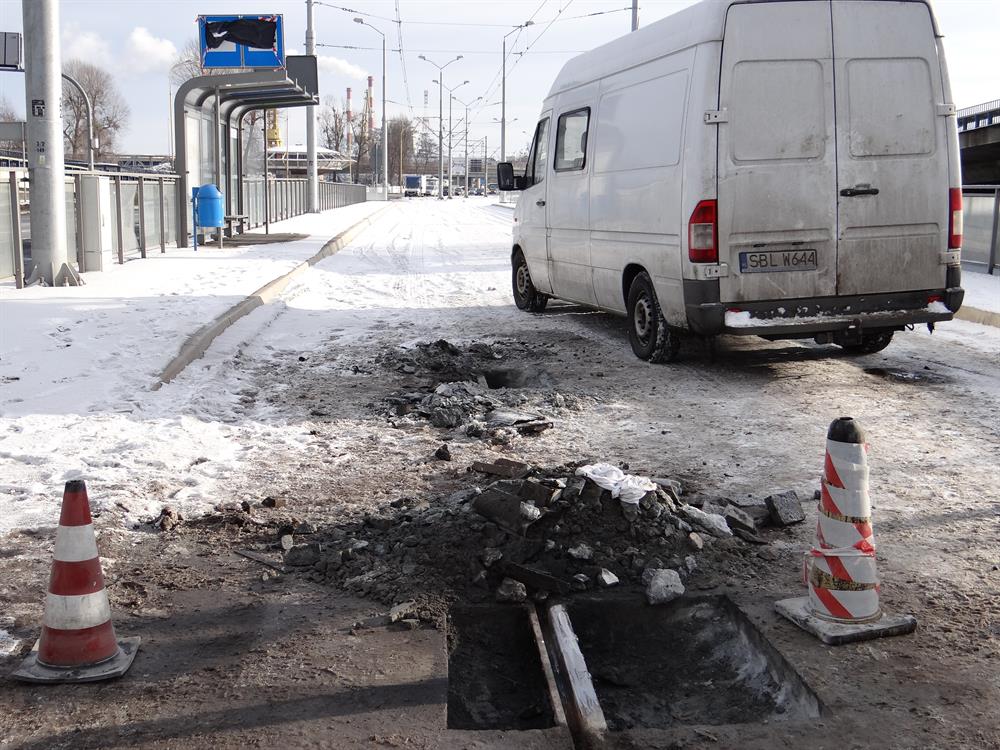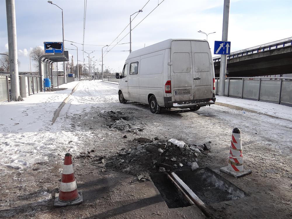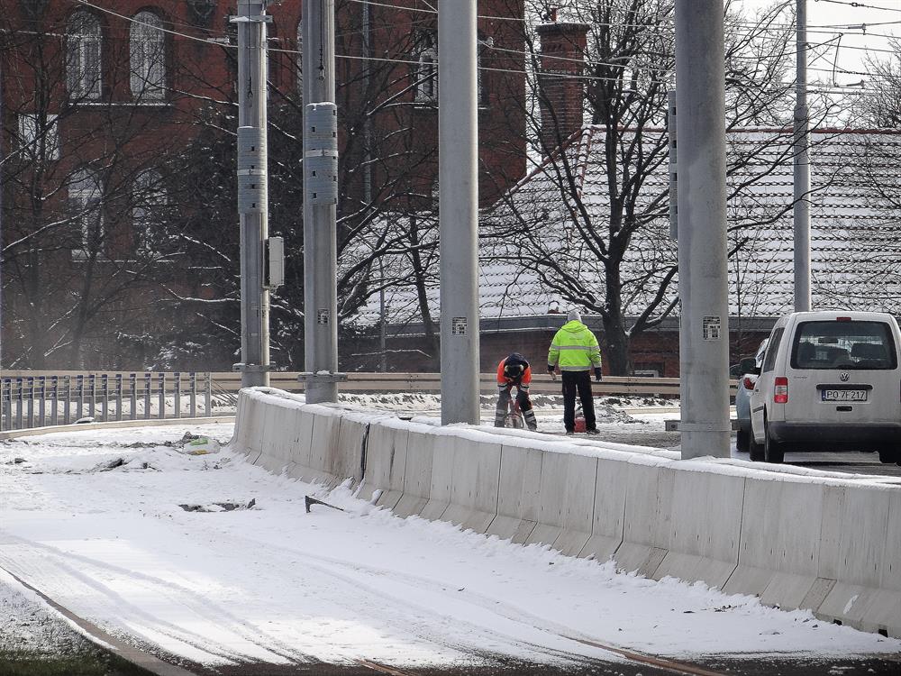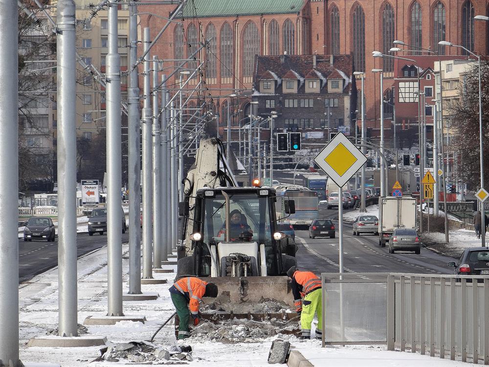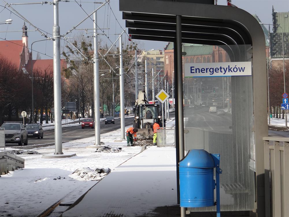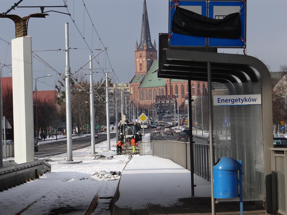 Wtorek był już czternastym, wcale nie ostatnim dniem, napraw szyn w torowiskach za mostem Długim w ulicach Energetyków, Gdańskiej i na przebudowanej pętli Basen Górniczy. Co najmniej do przyszłego tygodnia utrzymana zostanie autobusowa komunikacja zastępcza z linią 807 i wszystkimi innymi zmianami w połączeniach z prawobrzeżem miasta po wycofaniu 5 stycznia stamtąd wszystkich tramwajów.