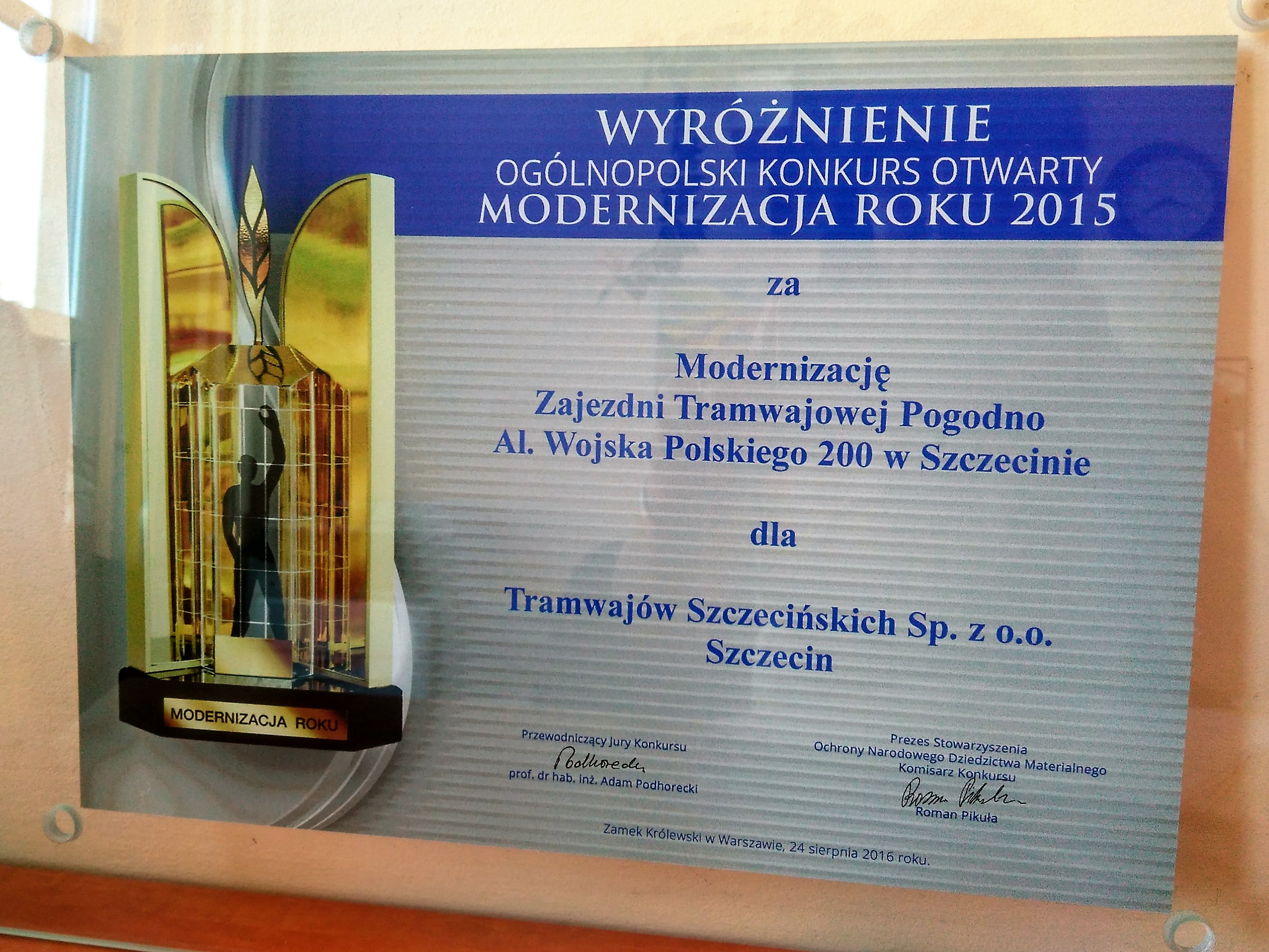 Wartość tego zadania wyniosła 135 300 000 zł brutto. Modernizacja zajezdni odbywała się w formule „Zaprojektuj i wybuduj”, a generalnym wykonawcą była firma ZUE S.A. z Krakowa. Nagrodę podczas uroczystej gali która odbyła się na Zamku Królewskim w Warszawie odebrał prezes spółki Krystian Wawrzyniak i zastępca dyrektora ds. inwestycji Krystyna Gawrońska.