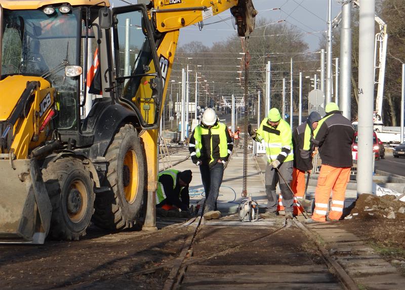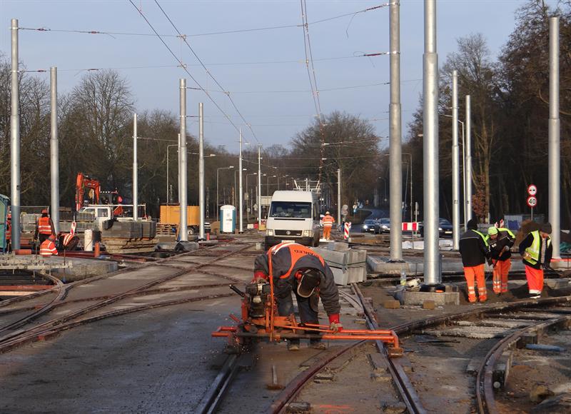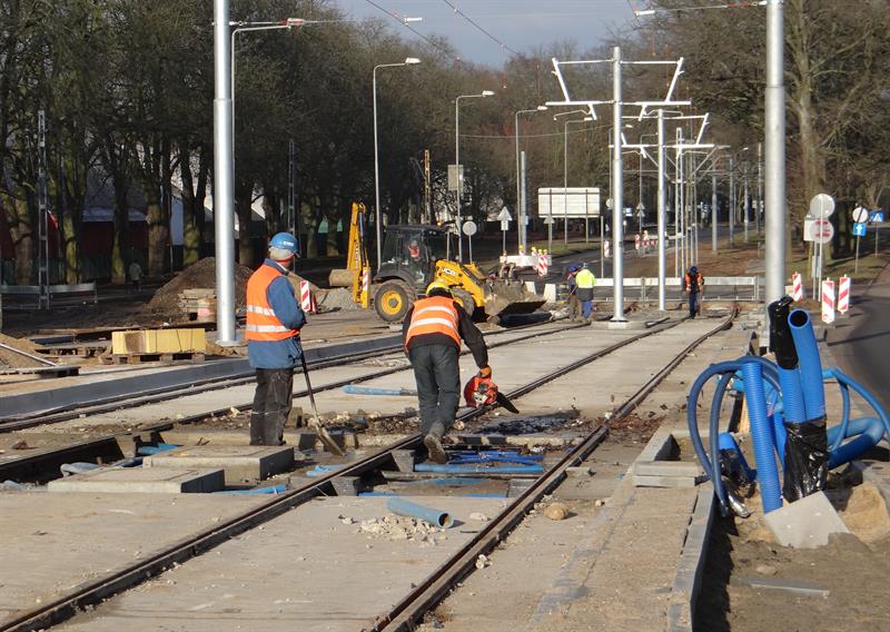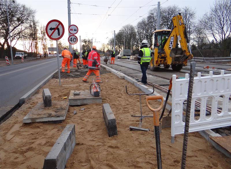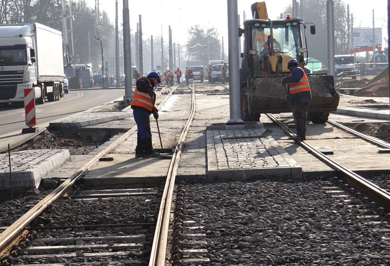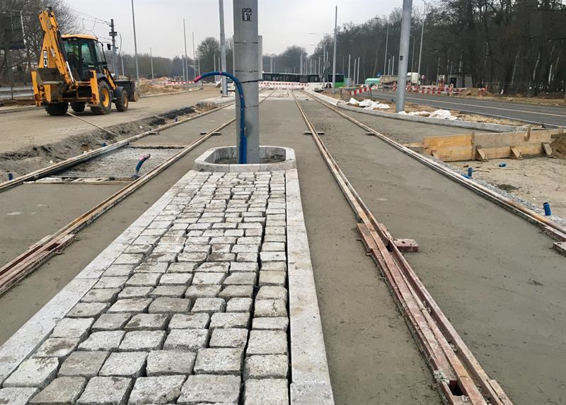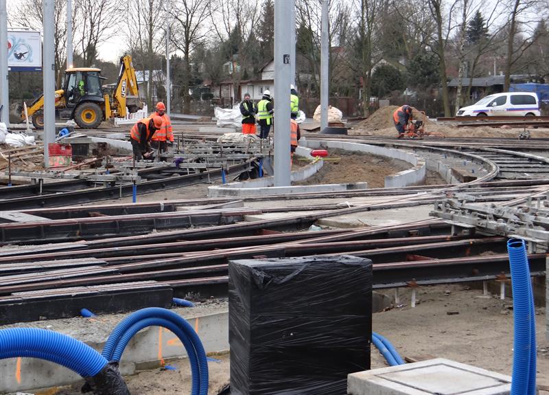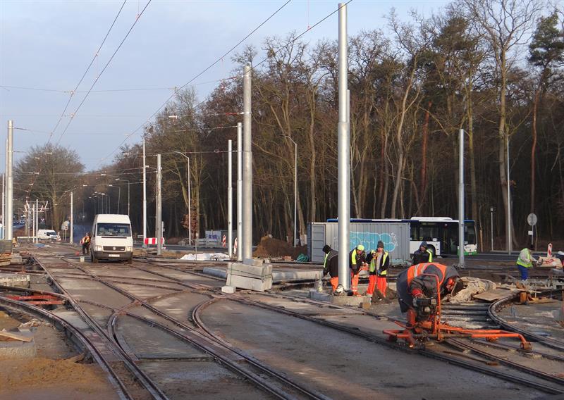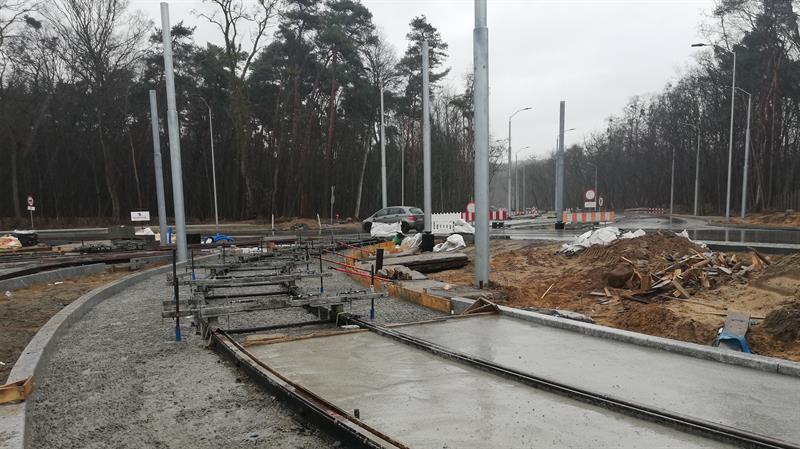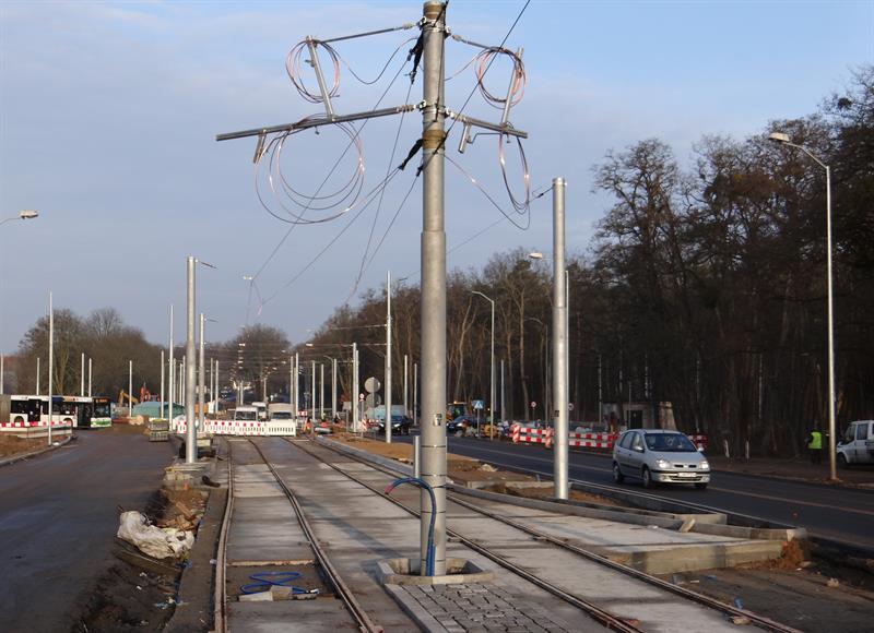 Na początku ubiegłego tygodnia na nowych słupach zamontowana została już sieć trakcyjna, a przez kolejne dni w pasie odcinka nowych torów do jazdy na wprost wykonywane były prace porządkowe. Równocześnie prowadzone są tam roboty przy montażu pozostałych fragmentów szyn na łukach przyszłego rozjazdu w obrębie ronda, który zaprojektowanym w kształcie rozgwiazdy. I będzie umożliwiał ruch tramwajów w każdym z możliwych kierunków.