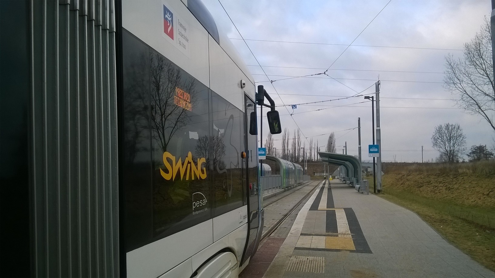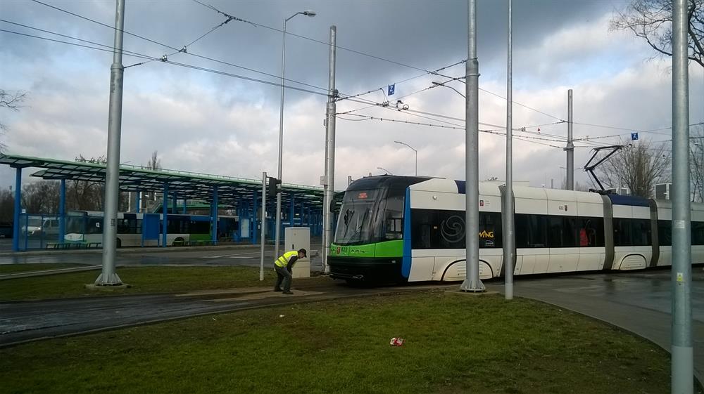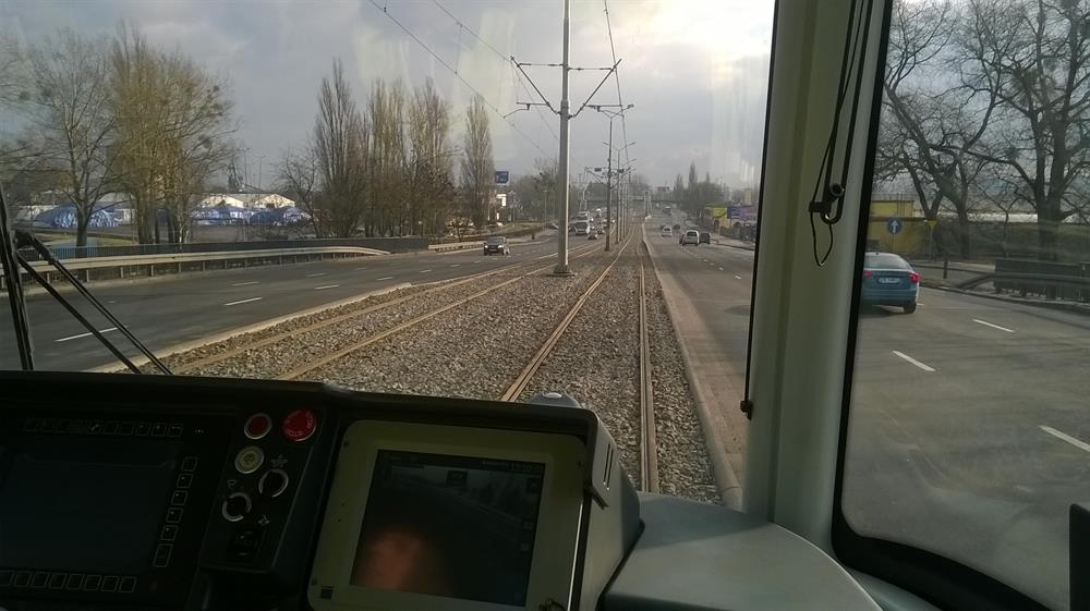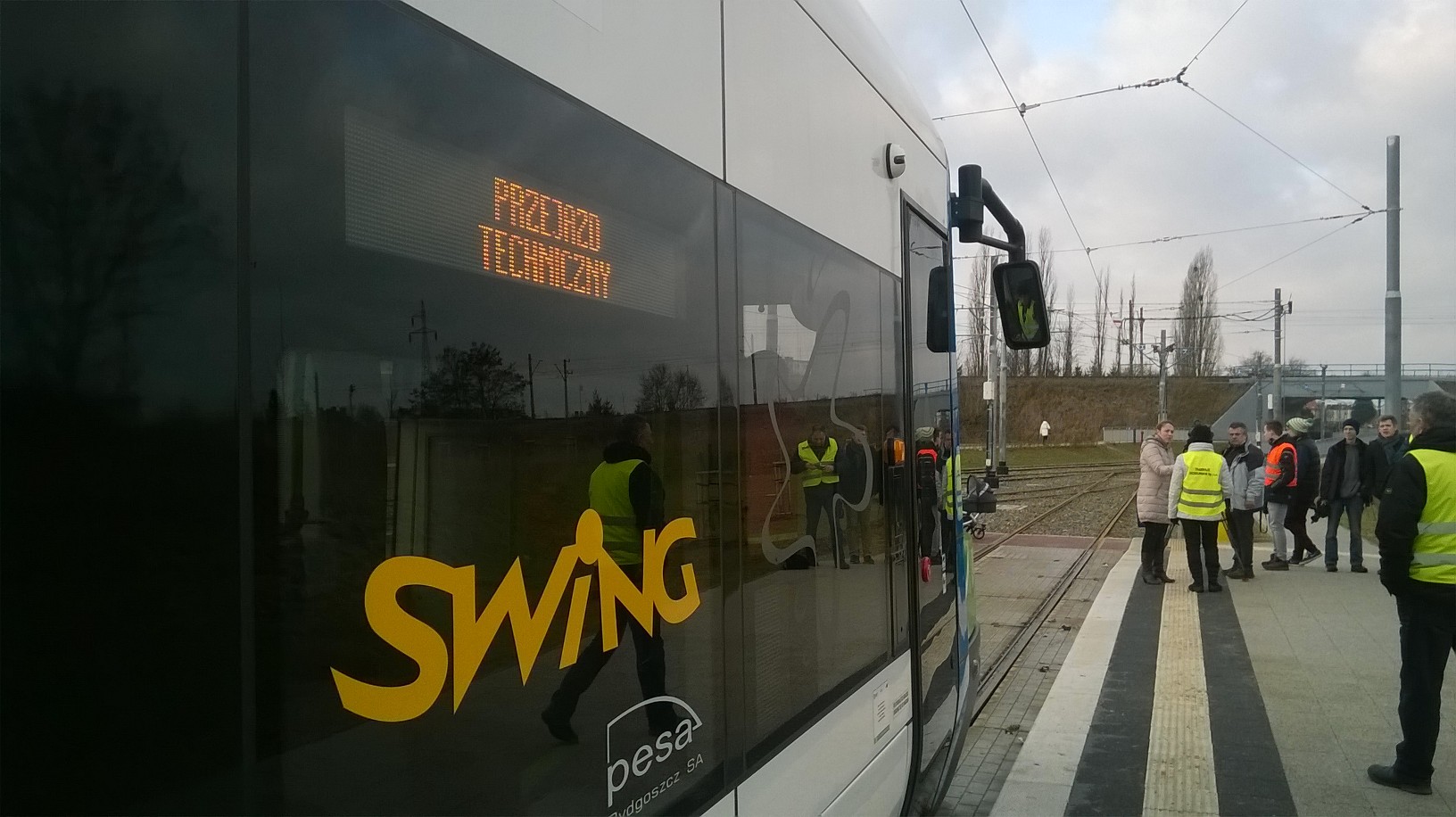 Przejazd techniczny trwa. Wagon typu Swing bez przeszkód dotarł do pętli Turkusowa i nadal z prędkością ok. 10 km na godz. zmierza do centrum. Po zawróceniu przy pl. Rodła rozpocznie się kolejny przejazd, już z większą prędkością.