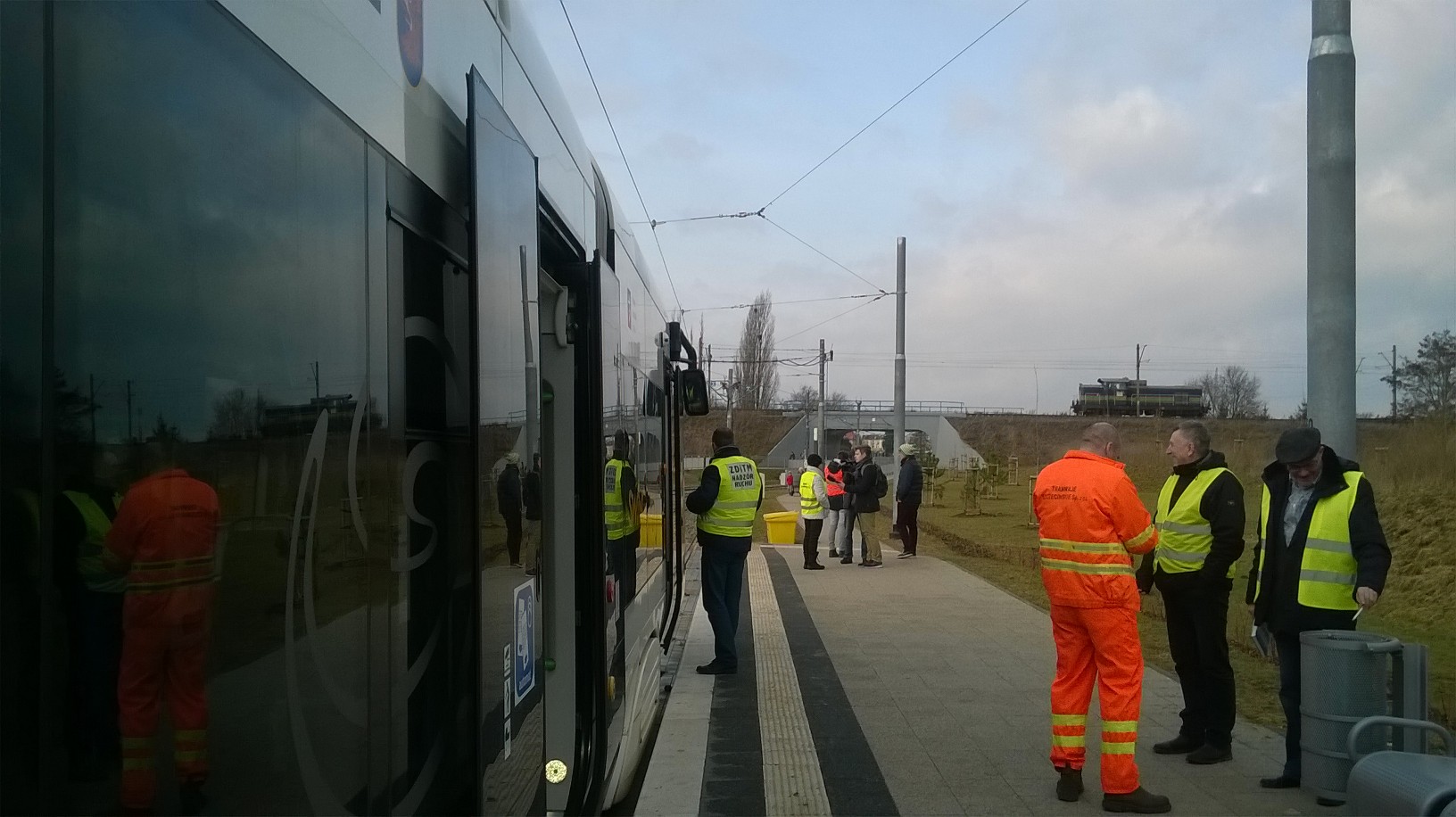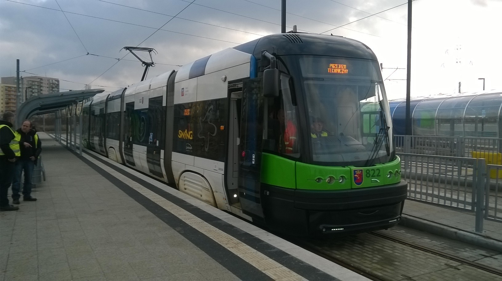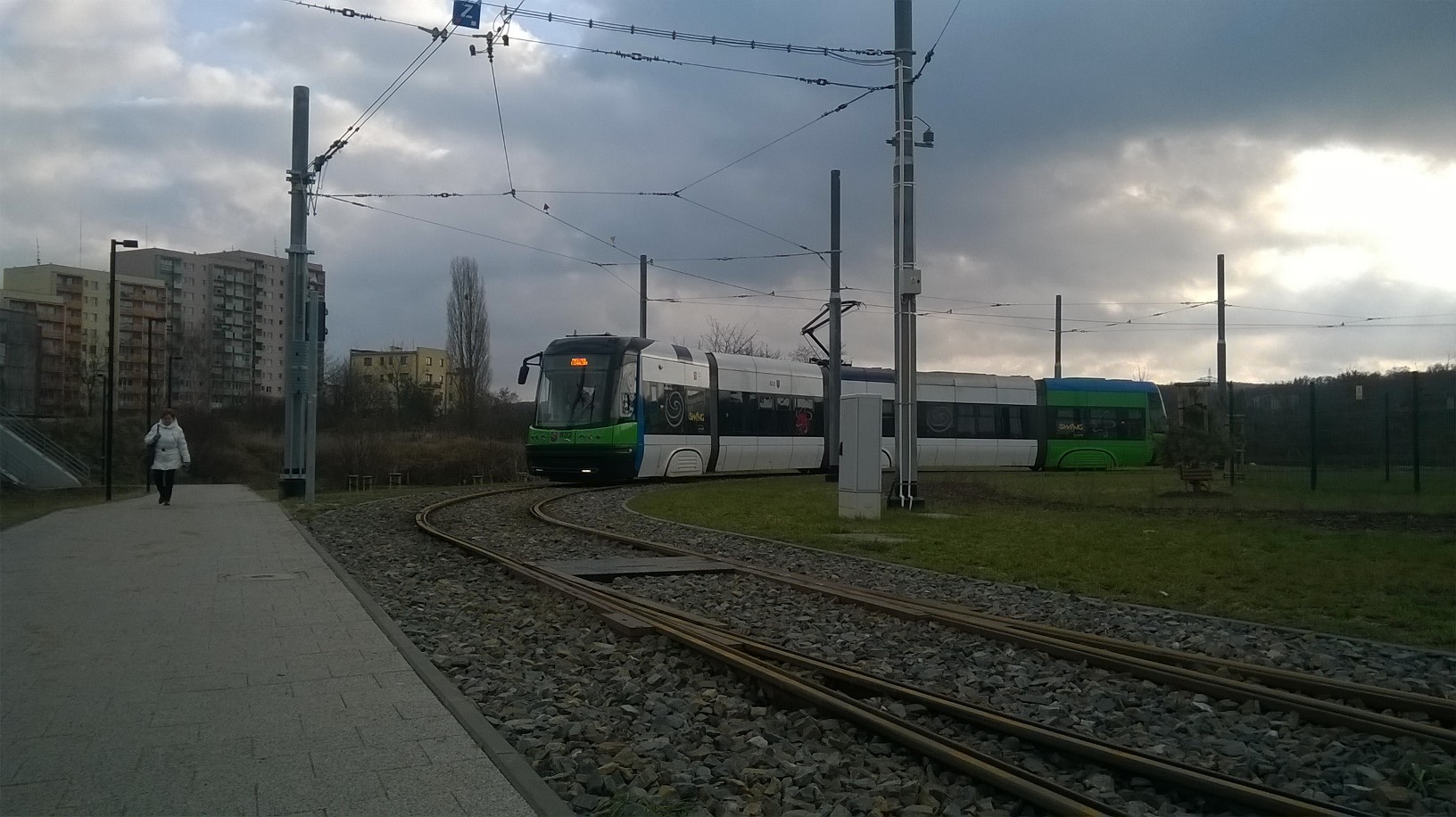 Przejazd techniczny trwa. Wagon typu Swing bez przeszkód dotarł do pętli Turkusowa i nadal z prędkością ok. 10 km na godz. zmierza do centrum. Po zawróceniu przy pl. Rodła rozpocznie się kolejny przejazd, już z większą prędkością.