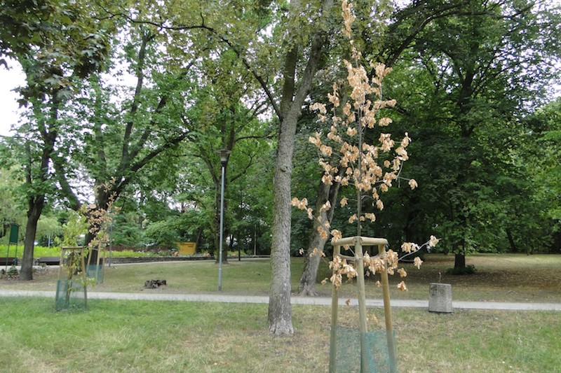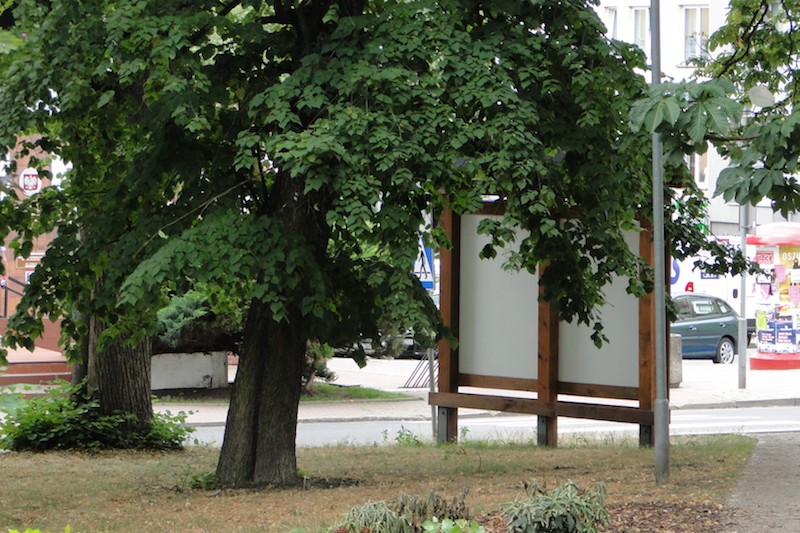 - Przy tablicy w pobliżu przejazdu kolejowego znajomy dopytywał, czy informacja też jest z drugiej strony. To samo powtórzyło się przy następnej, obok placu zabaw, a także tej naprzeciwko siedziby miejskich władz. Jego uwagę zwróciły także uschnięte drzewka, których kilka minęliśmy w parku. Tym smutnym widokiem był naprawdę mocno poruszony – nasz Czytelnik dodał, że również dla niego było to przykre.
