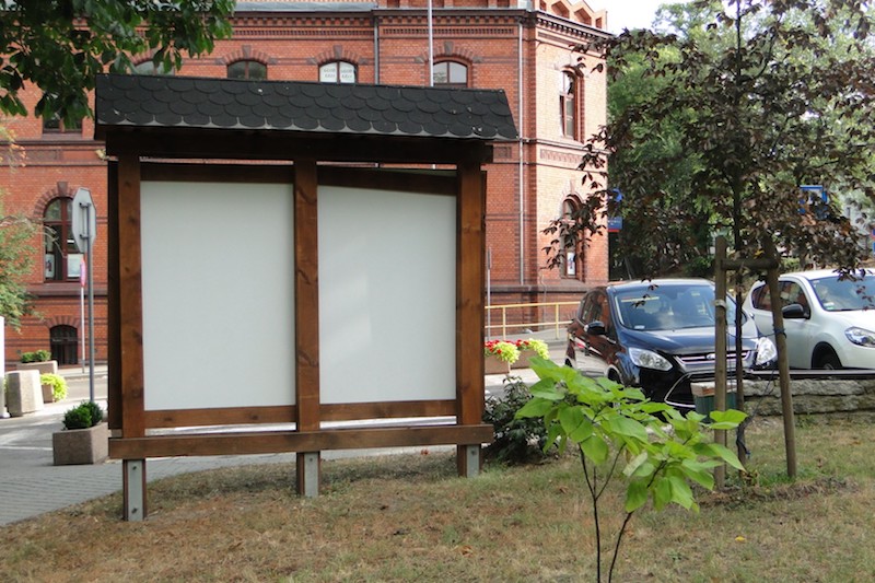 Przy ostatniej tablicy, którą spacerujący mijali, idąc w kierunku stacji kolejowej, przyjezdny zatrzymał się na dłużej. Nawet podszedł, przyjrzał się z bliska, obszedł z drugiej strony i nadziwić się nie mógł, dlaczego tablica, która dla przechodzących widoczna jest z obu stron, tylko na jednej z nich ma informację.