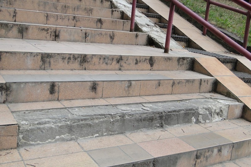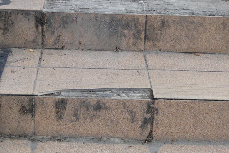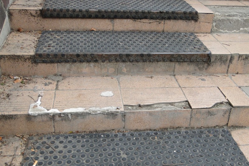 Oczom obu panów ukazał się bowiem widok zniszczonego obiektu. Wyszczerbione, podziurawione schody, częściowo pozbawione płytek, w kilku miejscach widoczne próby byle jakiego ich mocowania.