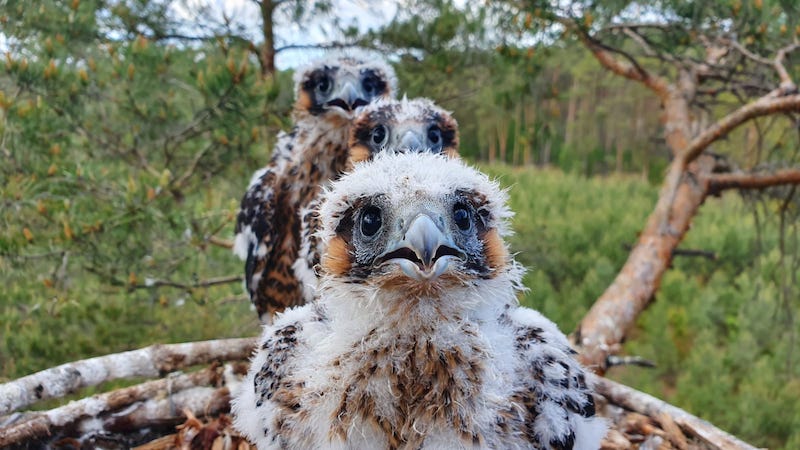 Na terenie Nadleśnictwa Kłodawa (Regionalna Dyrekcja Lasów Państwowych w Szczecinie) przyszły na świat dorodne trojaczki sokołów wędrownych (jedna samica i dwa samce).