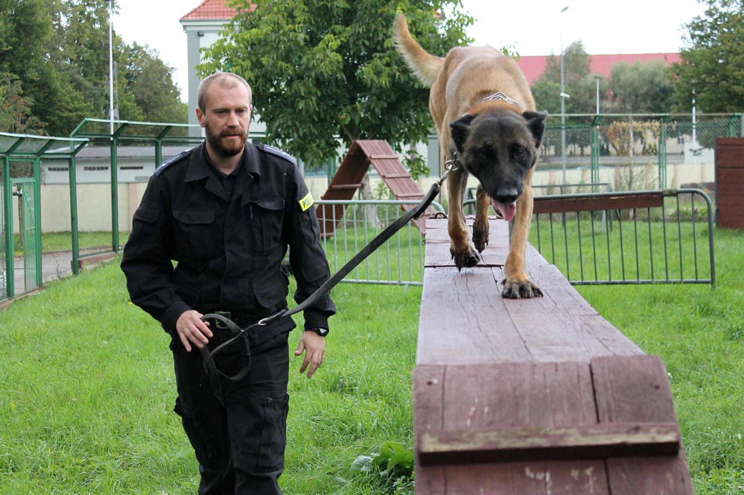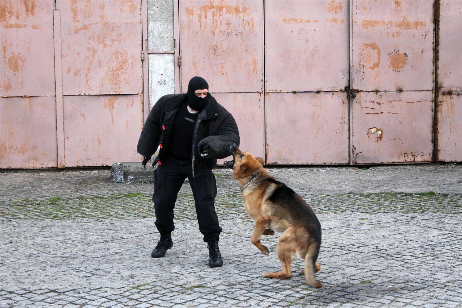 Funkcjonariusze ogniwa przewodników psów służbowych Wydziału Prewencji Komendy Miejskiej Policji w Szczecinie wraz ze swoimi czworonożnymi partnerami doskonalą umiejętności. Na odbywającym się teraz szkoleniu ćwiczą sytuacje, które mogą się im przytrafić podczas służby patrolowej.