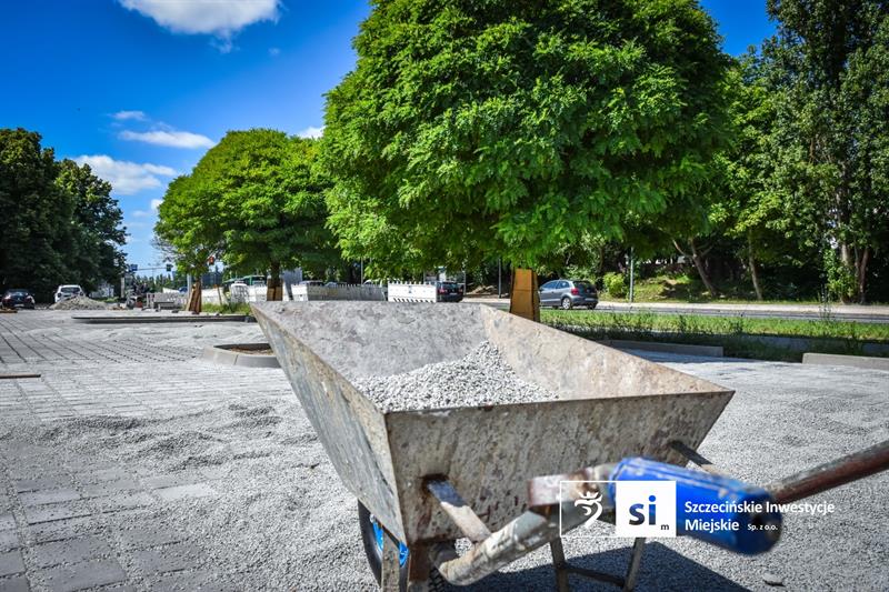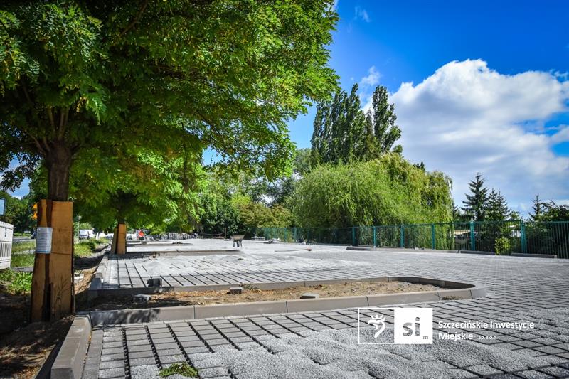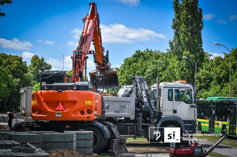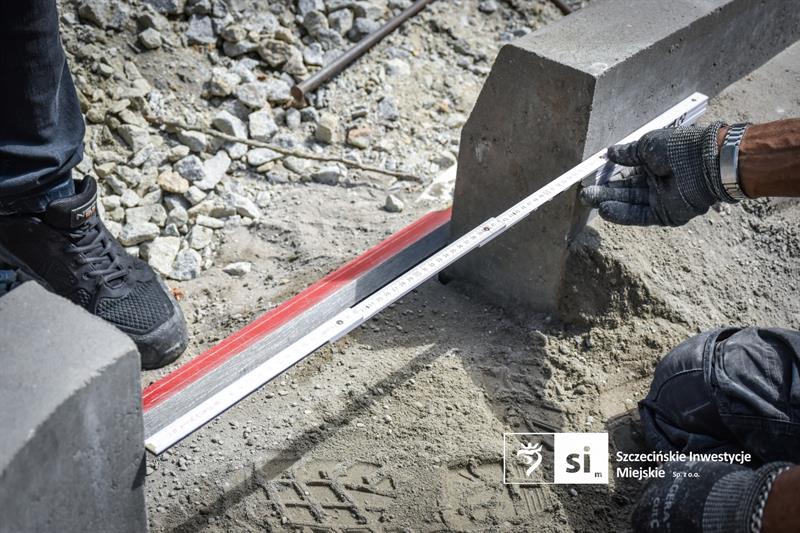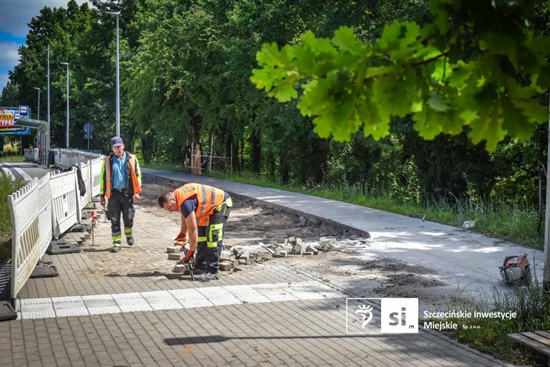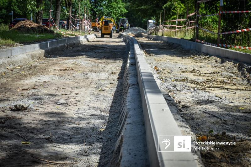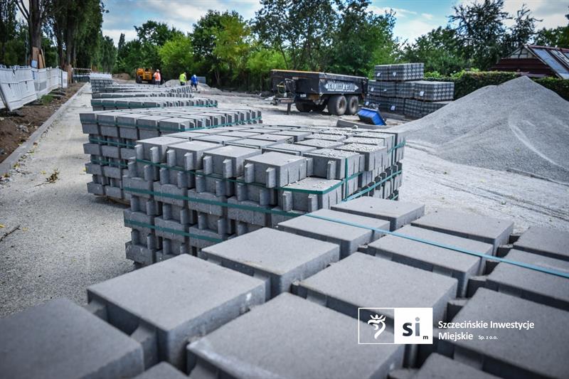 Plac budowy został podzielony na kilka odcinków, na których prace toczą się równolegle, choć z różnym stopniem zaawansowania. Najbardziej zaawansowany zakres robót dotyczy obecnie budowy miejsc parkingowych – na przygotowanych placach układana jest już kostka brukowa, a ekipy montują krawężniki, które wyznaczą granice jezdni i zatok postojowych. Na pozostałych fragmentach przyszłej trasy rowerowej trwają roboty ziemne i prace związane z przygotowaniem warstw konstrukcyjnych pod przyszłą nawierzchnię. Wykonywana jest również podbudowa pod nowy chodnik i ścieżkę rowerową.
