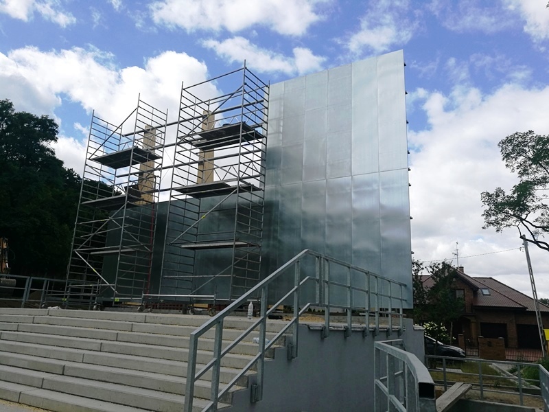 - Wybudowane zostały już trybuny, pośrodku których stoi projektownia. Dostaniemy się tam po nowych, skończonych schodach. Projektownia natomiast jest miejscem, skąd puszczane będą filmy z rzutnika. Obejrzymy je na gigantycznym ekranie. Trwa aktualnie jego montaż - informuje Andrzej Kus, rzecznik miasta ds. komunalnych i ochrony środowiska.