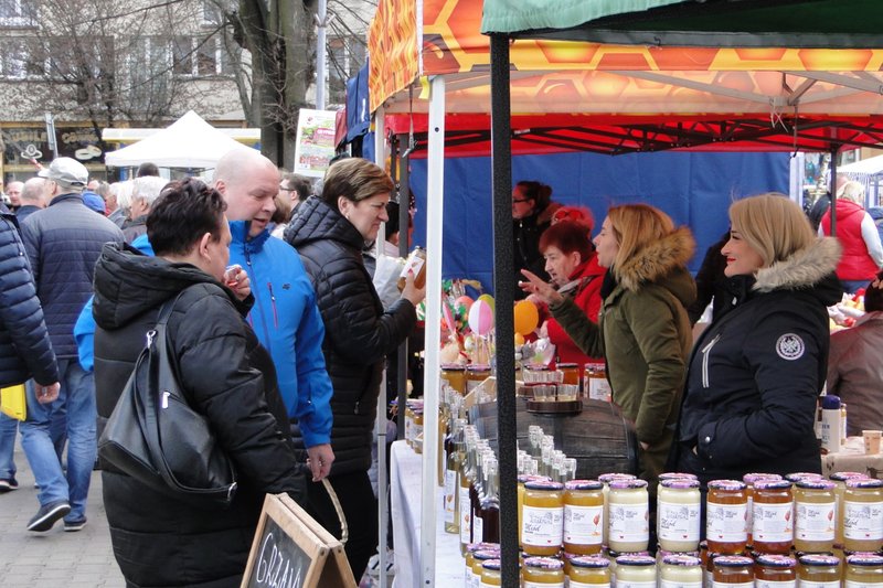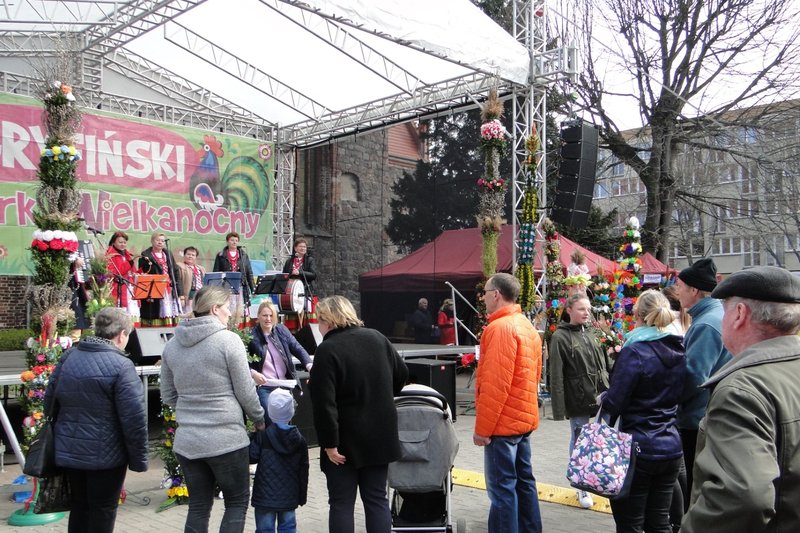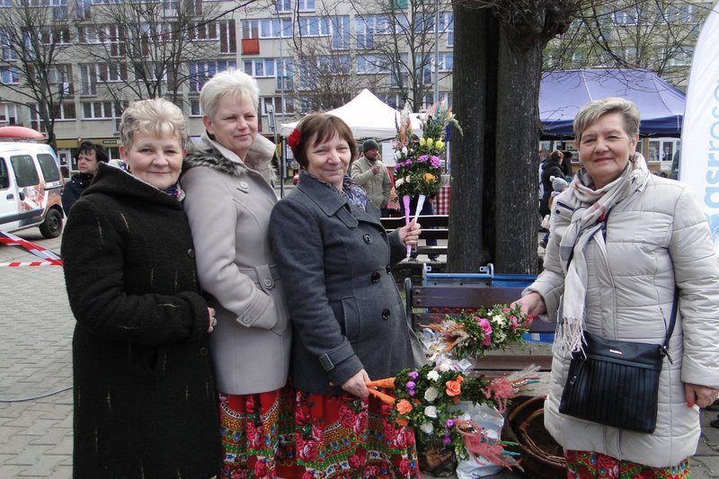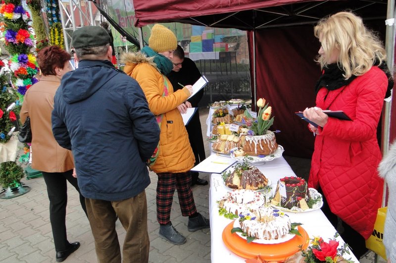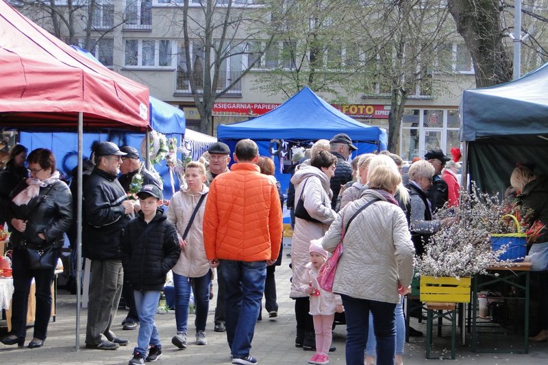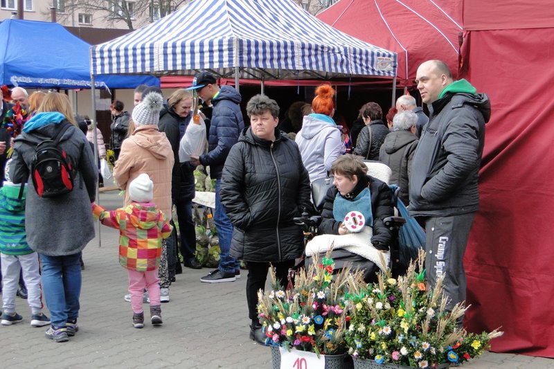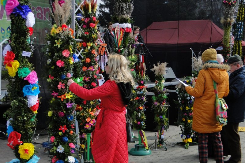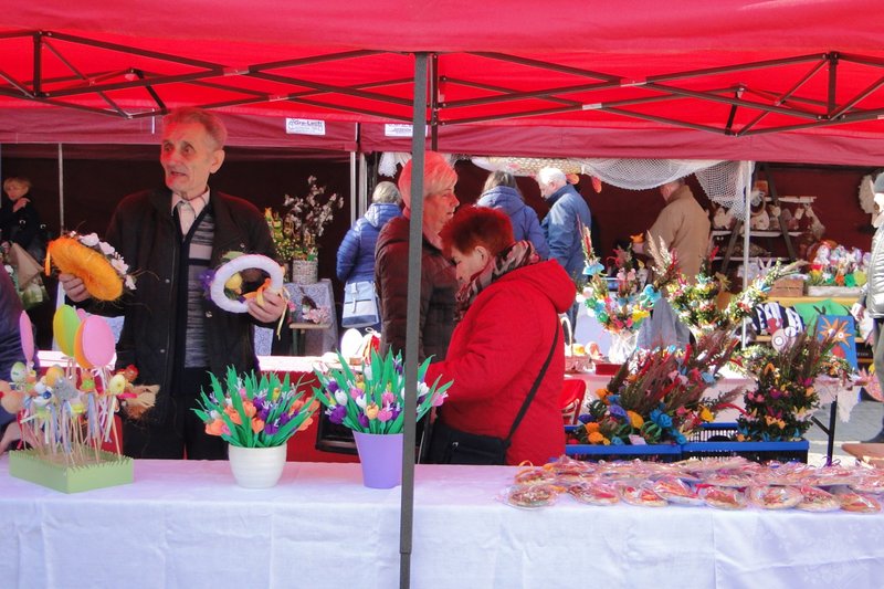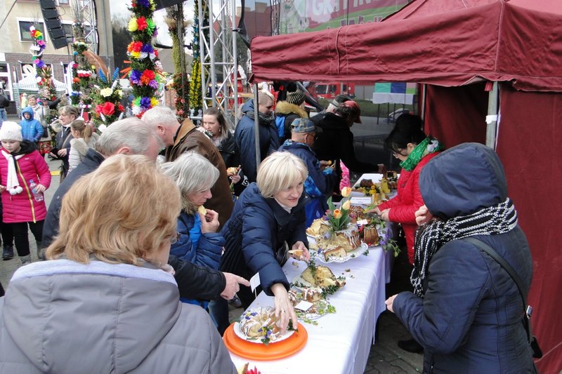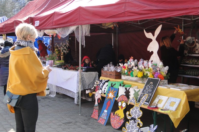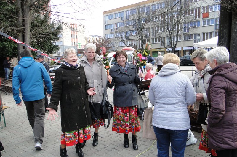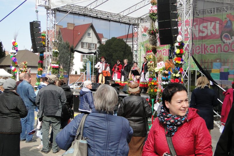 Jest barwnie, gwarno i radośnie. Na stoiskach pysznią się wielkanocne przysmaki, po które ustawiają się kolejki chętnych. Wielu nabywców znajdują świąteczne stroiki, palemki, pisanki, oraz wiele różnorodnych wielkanocnych ozdób. Na scenie prezentują się ludowe kapele, a grają tak skocznie, że ten i ów podrywa się do tańca.