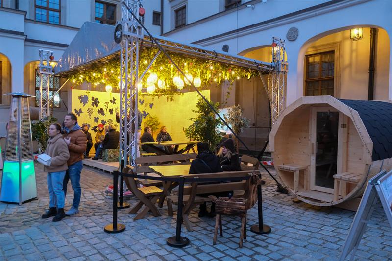 Na zamkowym dziedzińcu prezentują się: Winnica Bekasiak, Winnica Binowo, Winnica Darłowo, Winnica Kojder, Winnica Pałacu Rajkowo, Winnica Sydonia, Winnica Tecławska Góra, Winnica Turnau i Winnica Zodiak. To okazja, by porozmawiać ze specjalistami w dziedzinie winiarstwa i przedstawicielami winnic oraz posłuchać interesujących prelekcji. Odbywają się koncerty i konkursy z nagrodami. Są też stoiska z regionalnymi produktami - m.in. miodami i serami. Frekwencja odwiedzających dopisuje. Wino można degustować na miejscu i kupić na wynos.