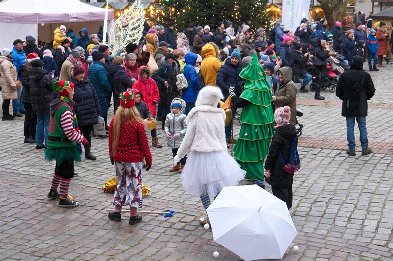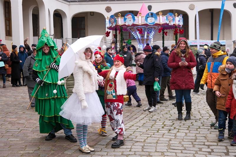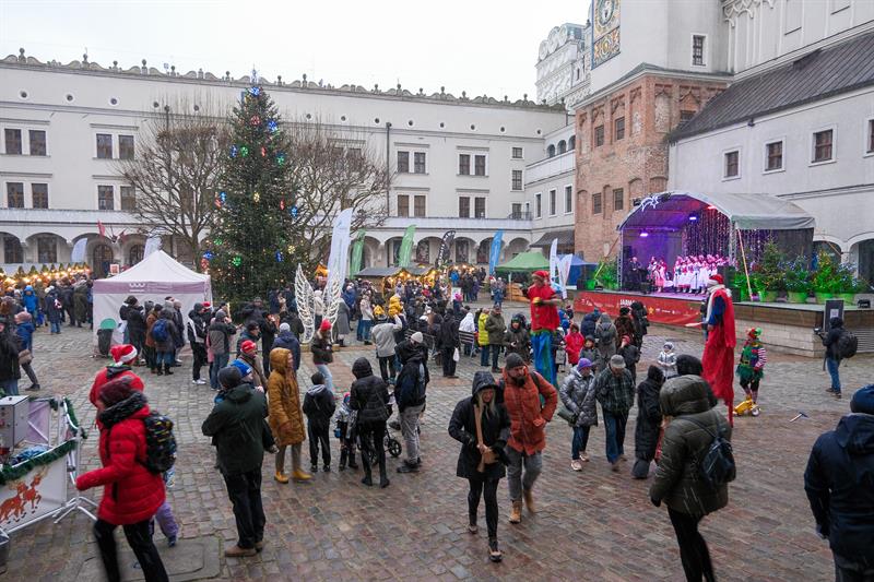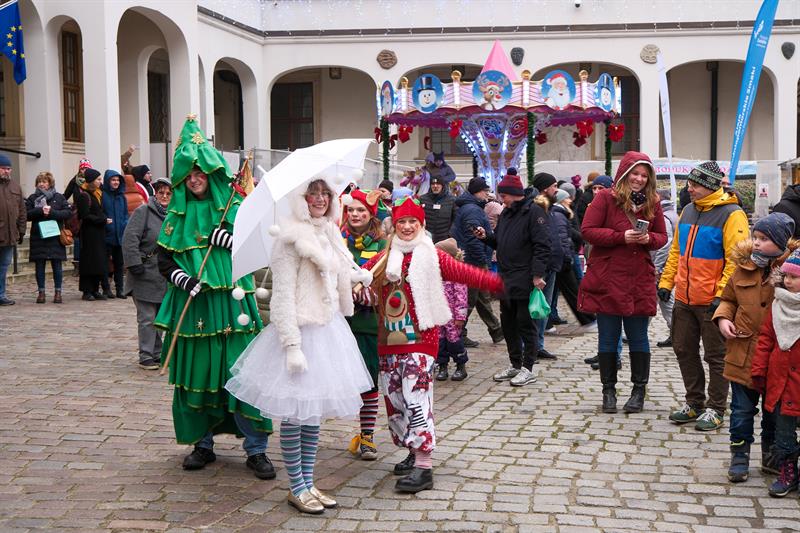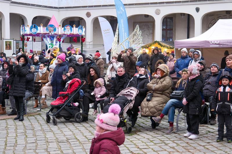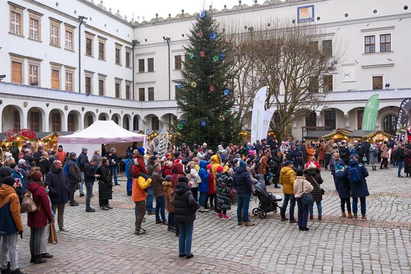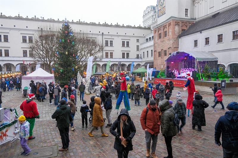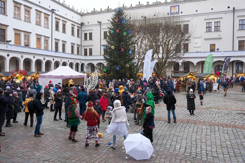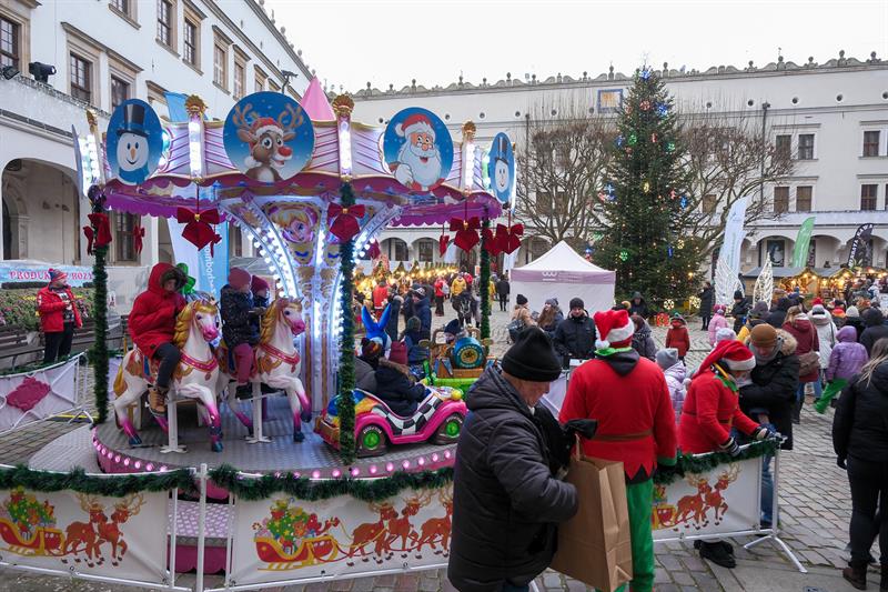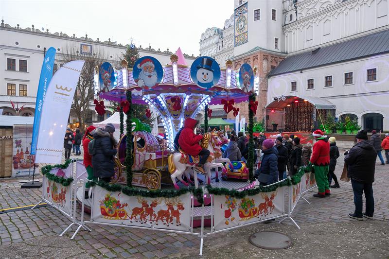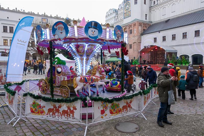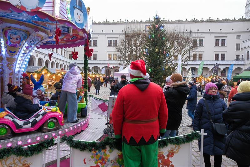Na dużym dziedzińcu, przy rozświetlonej choince, w sobotę na dzieci czekały kolorowe postacie z bajek oraz święty Mikołaj, który w tym roku przywitał gości z tarasów świeżo wyremontowanej części zamku. Dodatkowa atrakcja to darmowa karuzela wenecka, która cieszy się ogromną popularnością wśród najmłodszych.
