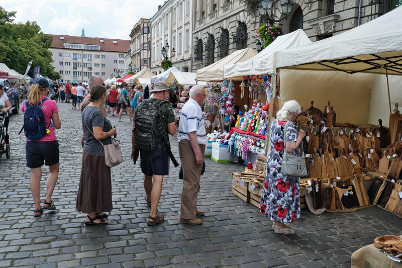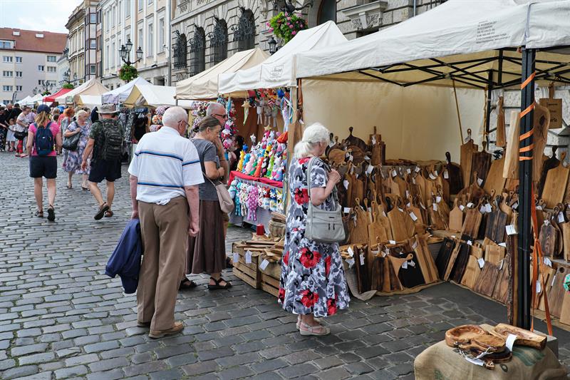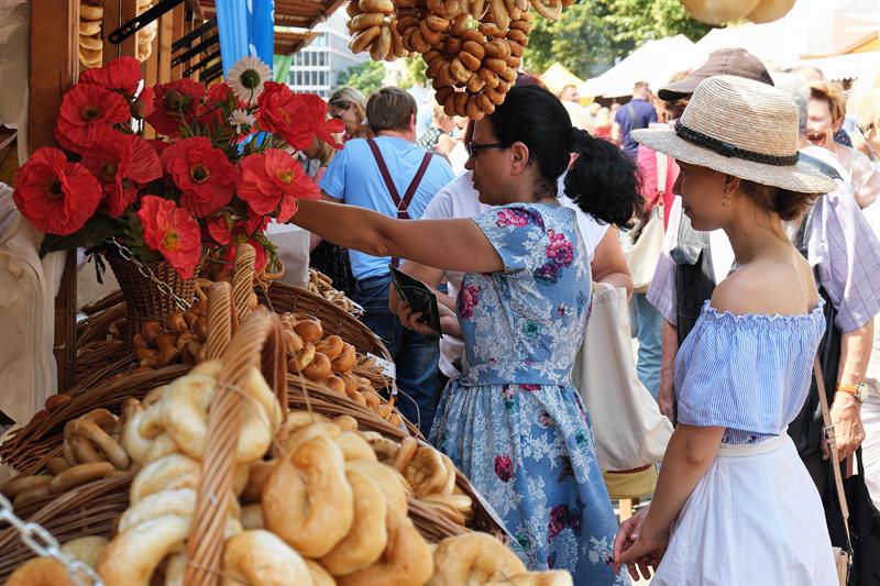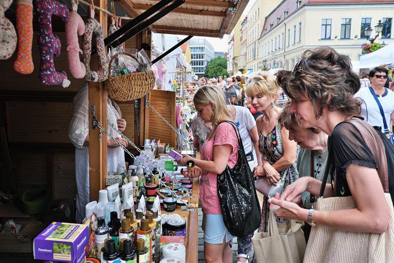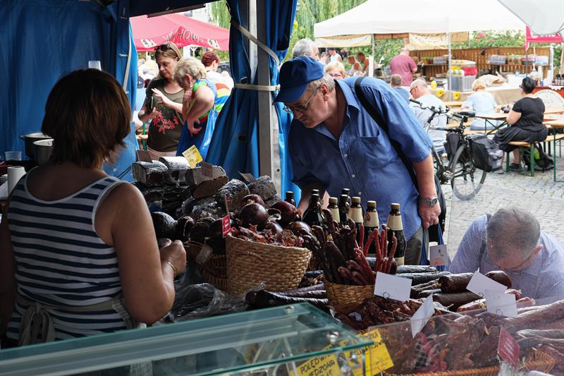 Węgierskie leczo, azerbejdżańska herbata, litewskie kiełbasy i kiszka ziemniaczana, chleby z Podlasia, turecka chałwa, prawdziwy paprykarz szczeciński - z łososia i dorsza, piwa, wina, wódki, kwasy chlebowe, sery. Przysłowiowe mydło i powidło. Wyroby rękodzieła artystycznego, porcelana, biżuteria, dewocjonalia. Jarmark z prawdziwego zdarzenia i pełną gębą - dosłownie i w przenośni.