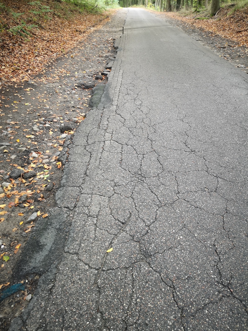 Każdy, kto jechał do malowniczego i pełnego jezior i lasów Binowa pod Szczecinem, wie w jakim stanie jest prowadząca tam droga. Liczy ona ok. 6 kilometrów i zaczyna się w Podjuchach. Latem pokonują ją nie tylko zmotoryzowani, ale także rowerzyści, którzy mają tu znakomite tereny do jeżdżenia. Teraz nie brakuje grzybiarzy. Wiele osób porusza się tą trasą jadąc na pole golfowe w Binowie, którym chwalą się w folderach reklamowych władze powiatu gryfińskiego i Szczecina.