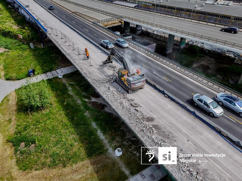 – Umożliwi to wykonawcy m.in. wykonanie zbrojonej warstwy reprofilacyjnej na górnej powierzchni płyty pomostu, na której powstanie nowa izolacja obiektu – informuje Piotr Zieliński, rzecznik prasowy miasta ds. inwestycji. – Następnie będzie można przystąpić do odtworzenia warstw konstrukcyjnych nawierzchni jezdni oraz ciągu pieszo-rowerowego.