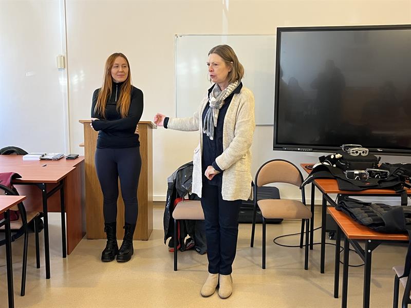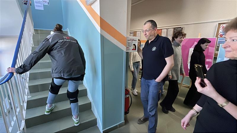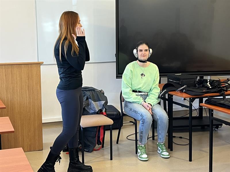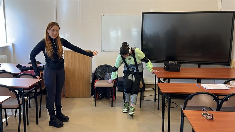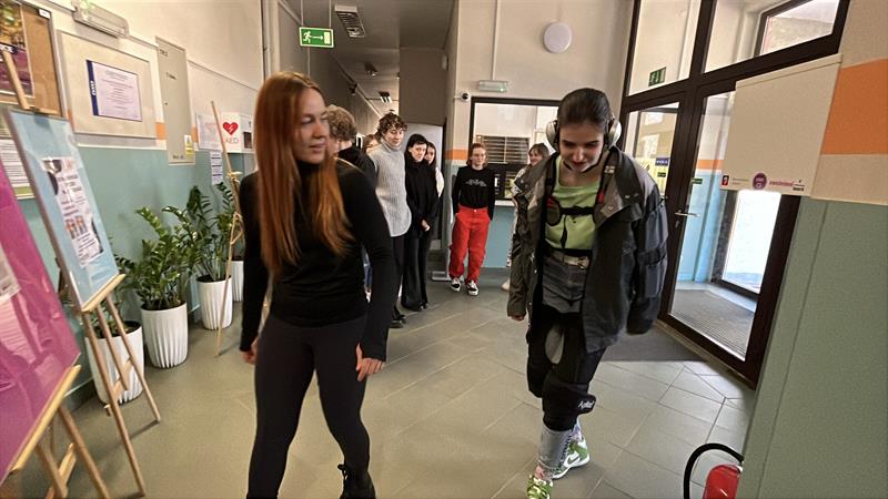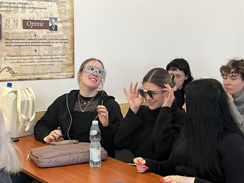 - Przy nałożeniu obciążeń jesteśmy w stanie poczuć się jak osoba starsza - tłumaczyła dr Aleksandra Sanger z Instytutu Pedagogiki US. - Chodzi obciążenia, które wynikają z wieku, czyli na przykład stawy śródręcza. Między paliczkami jest specjalna rękawica, która ogranicza nam ruchomość i możemy zobaczyć, jak to jest, kiedy się próbuje przyszyć np. guzik.
