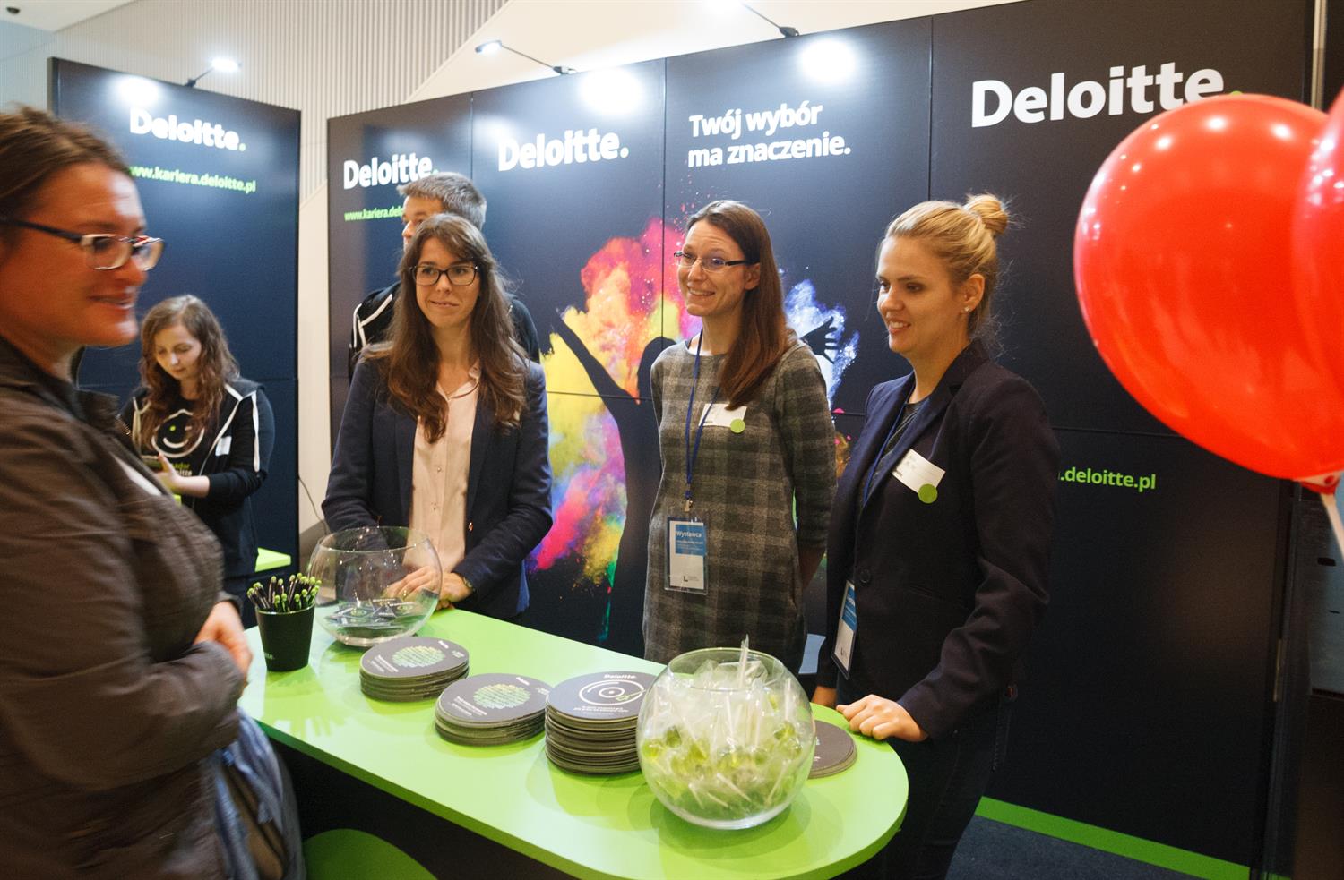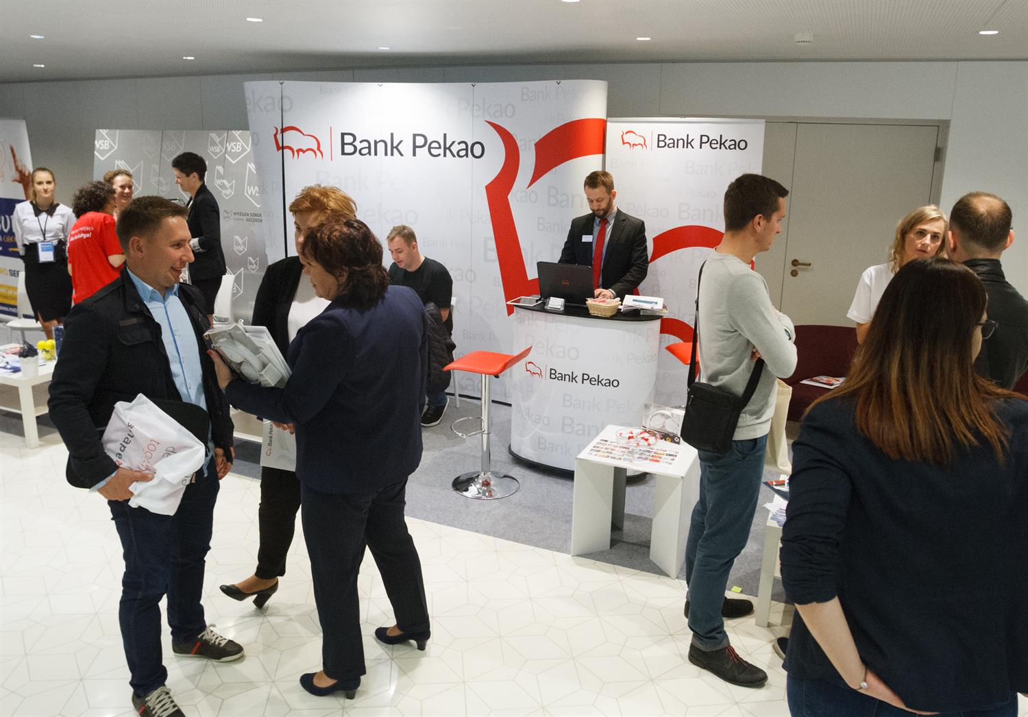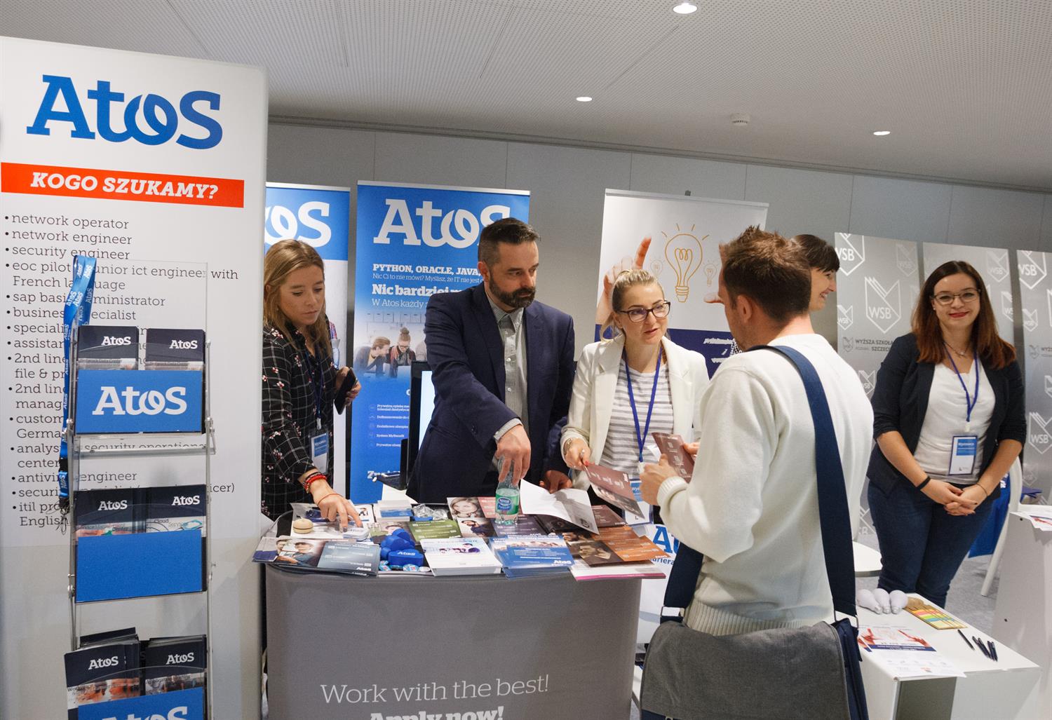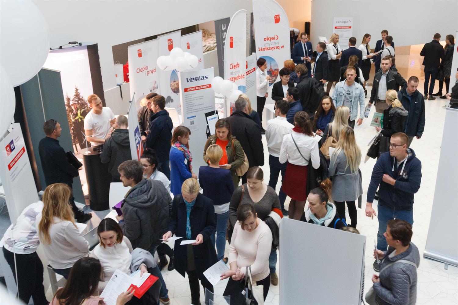 W niemal klubowej atmosferze, bo przy stolikach z kawą, można porozmawiać o profilu przedsiębiorstwa, o ewentualnym zatrudnieniu, pobrać dokumenty związane z rekrutacją. Do niektórych stoisk ustawiają się długie kolejki chcących uzyskać informacje i etat.