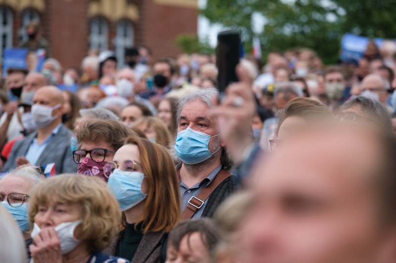 Pod koniec wiecu żona kandydata, Małgorzata Trzaskowska, zachęcała do oddania na niego głosu.