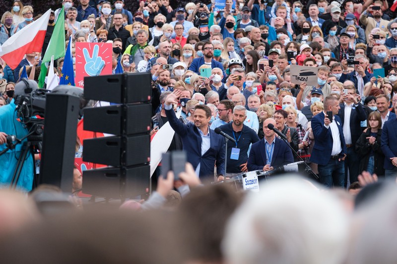 Podczas spotkania na pl. „Solidarności” Rafał Trzaskowski nie szczędził słów krytyki pod adresem polskiego rządu. Obecnej władzy zarzucał kłamstwa i manipulacje.