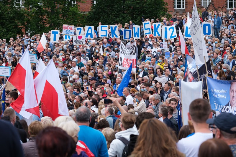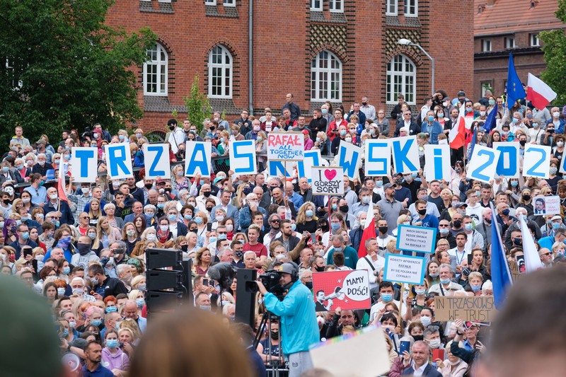 Kandydat na prezydenta RP Rafał Trzaskowski przyjechał w środę (8 lipca) do Szczecina. Najpierw miał spotkanie w kameralnym gronie na terenie ogródków działkowych „Przyjaźń”, a później wiec na placu „Solidarności”, który wypełnili jego sympatycy.