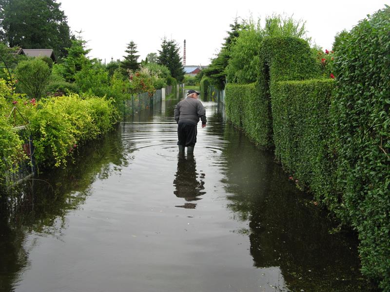 Na zdjęciu: Pod wodą znalazły się nawet alejki działkowe.