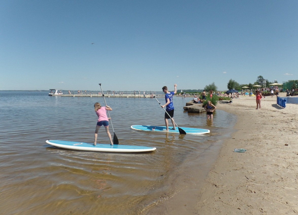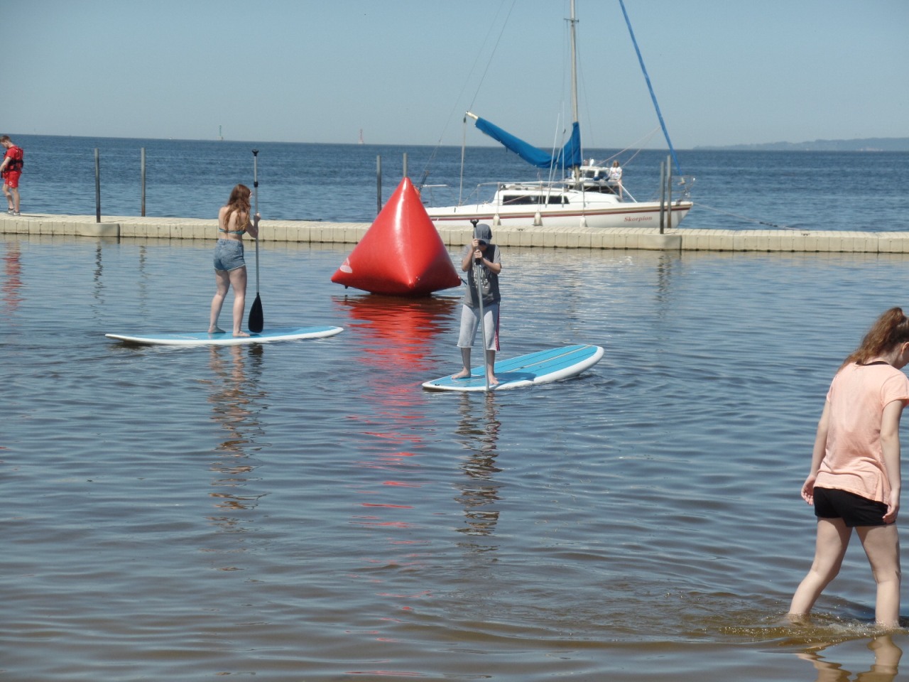 Pogoda dopisuje, więc i zabawa z okazji Dnia Chemika w Trzebieży trwa w najlepsze. Jedni się chłodzą w wodzie, inni odpoczywają bardziej aktywnie. Każdy może spróbować zabawy na deskach SUP (deska, na której można płynąć na stojąco, odpychając się wiosłem). Innych pewnie bardziej przyciągną symulatory różnych aut i motocykli. Miłośnicy tańca mogli też wziąć udział w warsztatach tanecznych z Pauliną Woźniak. Atrakcje są dostępne bezpłatnie do późnego wieczora.