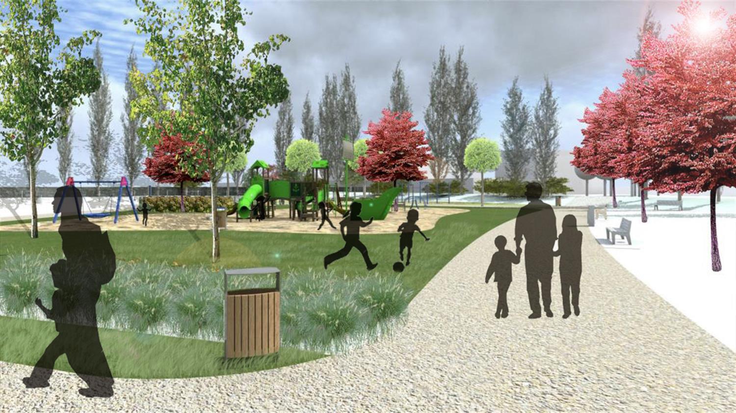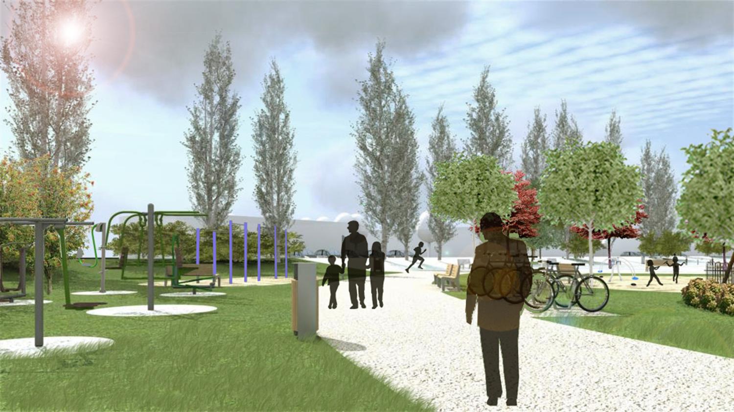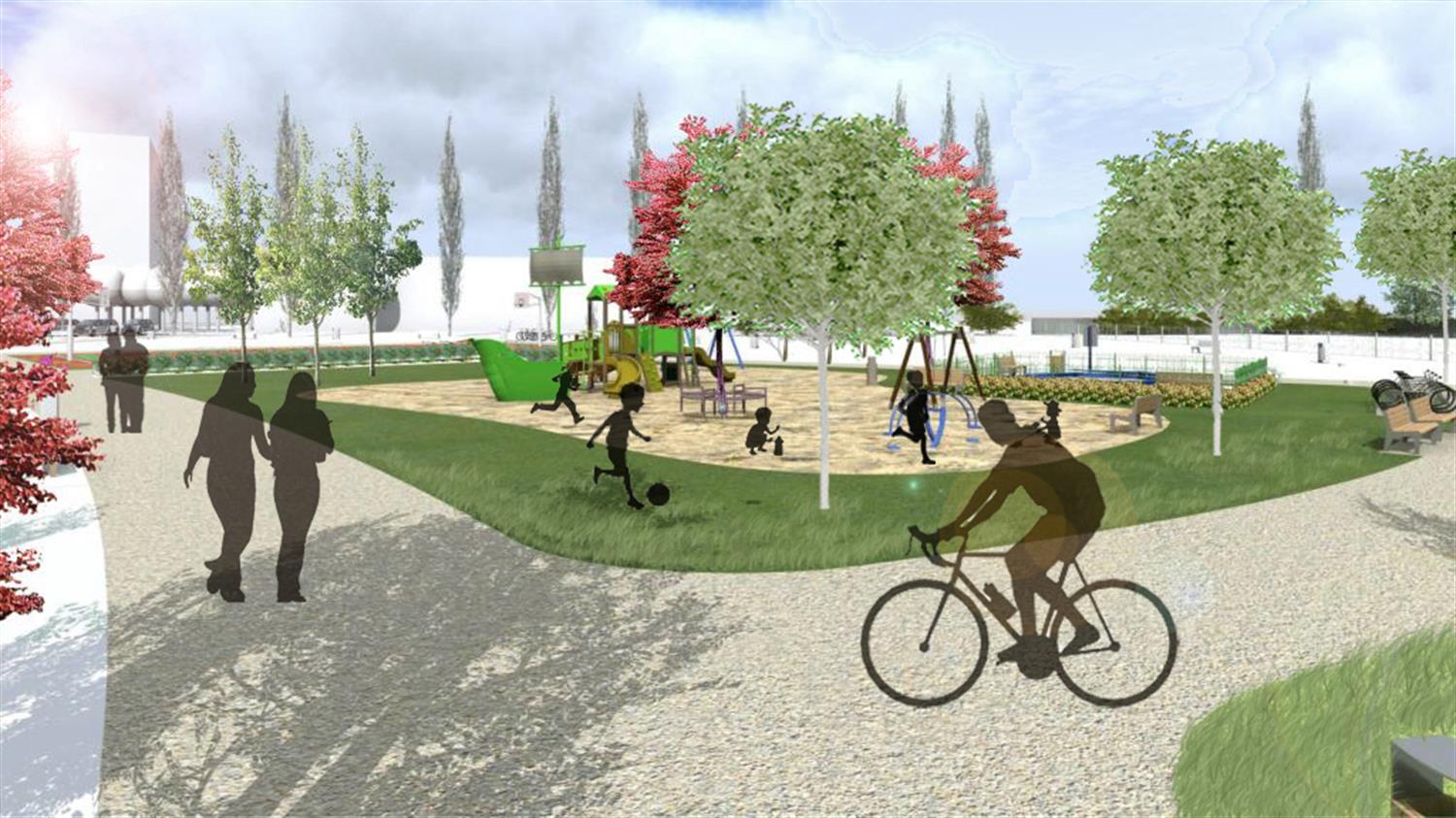 Zwycięzca najpierw ma rozebrać i zutylizować istniejące nawierzchnie, obiekty kubaturowe, słupy itp. Później wykona m.in. nowe uzbrojenie podziemne, ciągi komunikacyjne, chodniki zewnętrzne, boisko sportowe z wyposażeniem, oświetlenie terenu, plac zabaw z wyposażeniem i ogrodzeniem oraz siłownię. Zamontuje stoły do gry w szachy i w ping-ponga. W zakres prac wchodzi też wykonanie chodników i trawników, nasadzenia zieleni, postawienie koszy na śmieci i ławek.