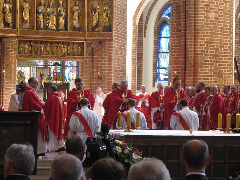 Sobotnie święcenia kapłańskie zbiegły się z uroczystością Św. Apostołów Piotra i Pawła. Zgodnie z tradycyjnym obrzędem arcybiskup i zgromadzeni licznie prezbiterzy kładli dłonie na głowach alumnów, by ci mogli działać w imieniu Chrystusa Kapłana. Jednym z elementów liturgii święceń było także naznaczenie dłoni alumnów Olejem Krzyżma, ustanowionym w Wielki Czwartek na znak uświęcającej łaski Ducha Świętego. - Dotknięci tym olejem kapłani Jezusa Chrystusa idźcie w nowy czas nadziei, łask, przebaczenia i uświęcajcie w tym czasie ziemie naszej diecezji nad Odrą i Bałtykiem - mówił do nowo wyświęconych prezbiterów ks. arcybiskup.