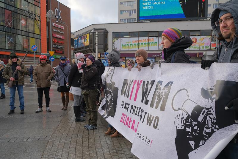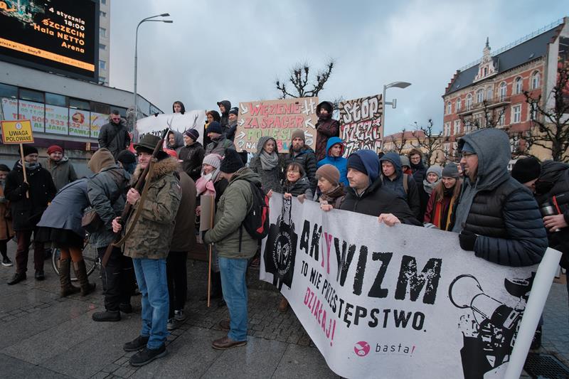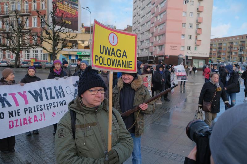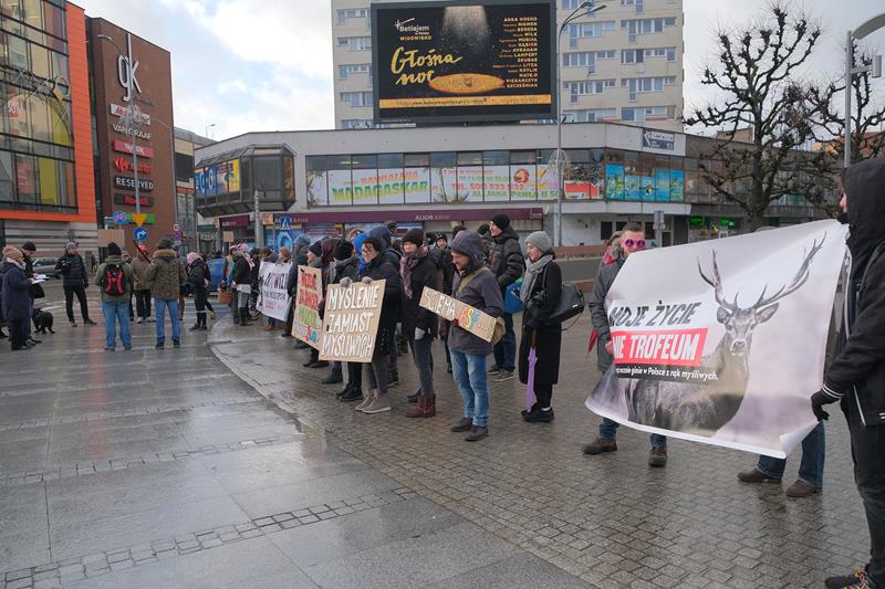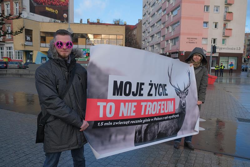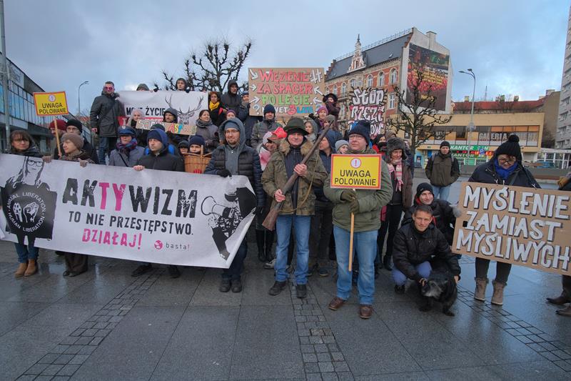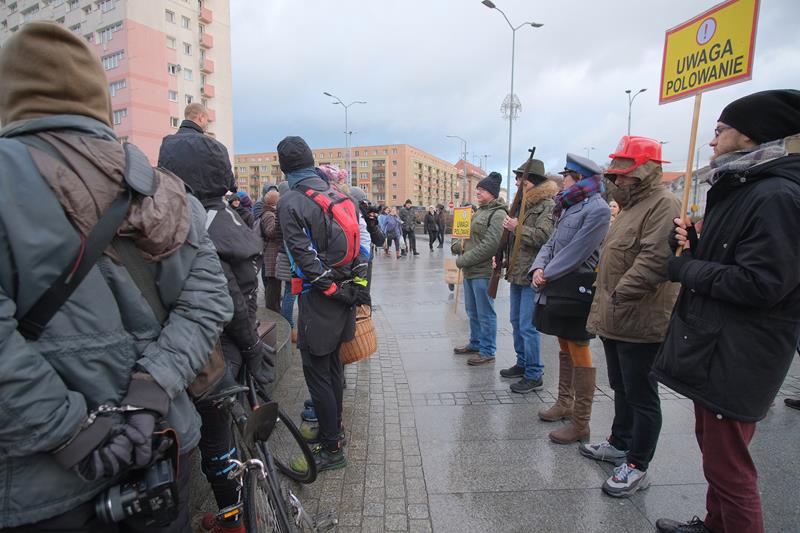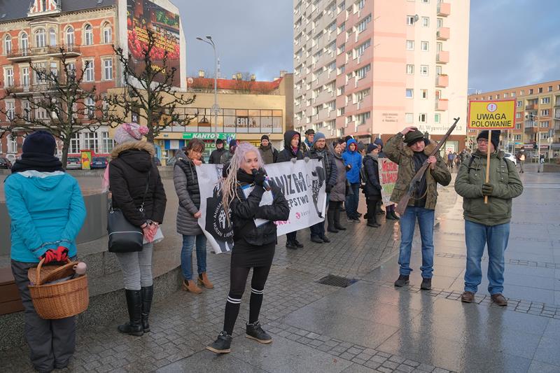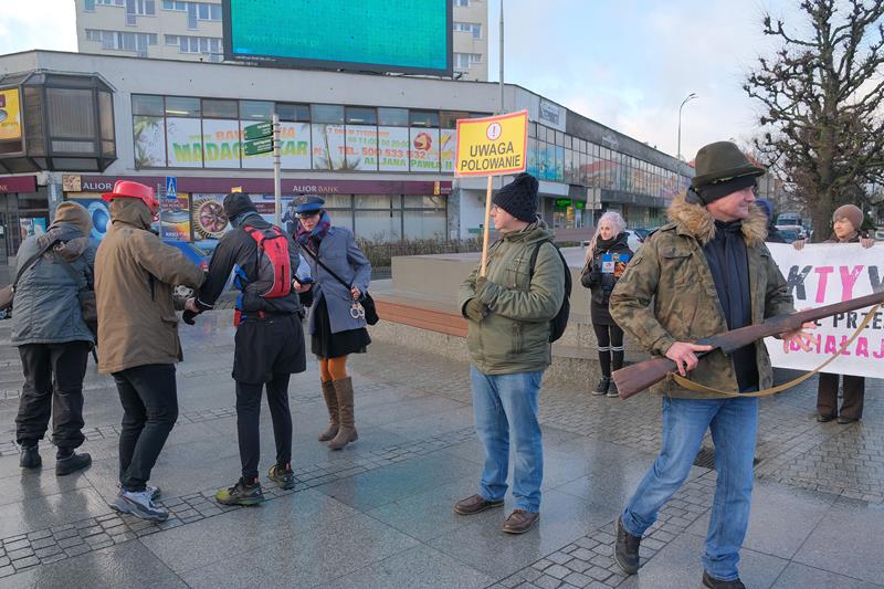 Na pl. Pawła Adamowicza w Szczecinie w sobotę członkowie Inicjatywy Na Rzecz Zwierząt Basta odegrali scenki pokazujące, jakie konsekwencje czekają na ludzi po przegłosowaniu przez Sejm specustawy o zwalczaniu ASF. W ten sposób zaprotestowali przeciwko wprowadzaniu w życie nowych przepisów. Twierdzą bowiem, że są szkodliwe. Napisane „pod myśliwskie lobby".