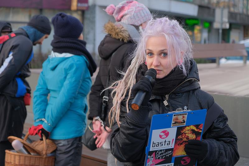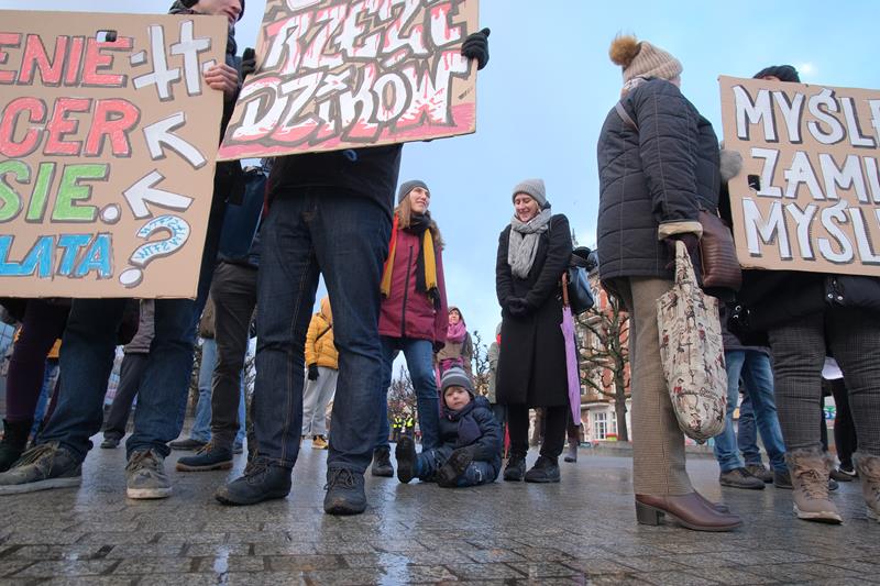 protest odfajkowany a pani z fioletowymi włosami proponuje by dokonała autoeutanazji i w ten sposób zredukowała swój ślad węglowy do zera.