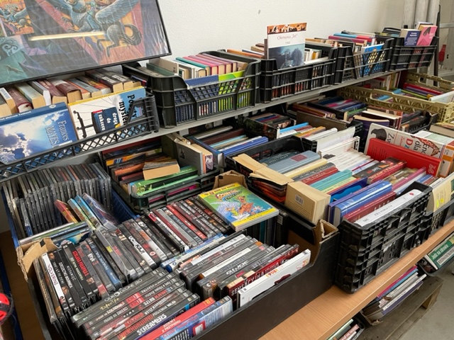 W trzech magazynach czekają tysiące przedmiotów. To porcelana, szkło, zabawki, obrazy, artykuły ozdobne itp. W kolejnym z nich meble, stoły, krzesła, artykuły dla dzieci, nawet rolki i buty narciarskie. Trzeci magazyn, oznaczony numerem 2, to regały z książkami.