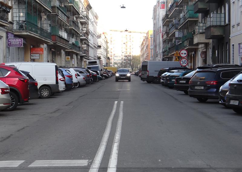 Wzdłuż każdej z ulic wyznaczone zostaną zatoki postojowe do parkowania równoległego z jednej i prostopadłego z drugiej strony jezdni. W miejscach narażonych na nieprzepisowe parkowanie pojazdów wykonane zostaną słupki zabezpieczające oraz ustawione zostaną donice z białego betonu i z siedziskami z desek ze sztucznego drewna. Ponadto pojawią się stojaki rowerowe. ©℗