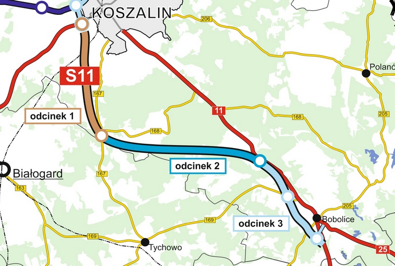 Dla każdego z tych odcinków S11 Koszalin – Bobolice ogłoszono odrębne przetargi.