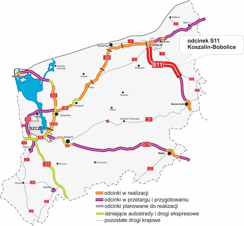 Rozpoczęły się postępowania przetargowe, w których zostaną wybrani wykonawcy S11 od Koszalina do Bobolic. Fragment ten został podzielony na trzy odcinki realizacyjne: Koszalin – Zegrze Pomorskie (o długości 16,8 km), Zegrze Pomorskie – Kłanino (19,28 km) i Kłanino – Bobolice (11,6 km).