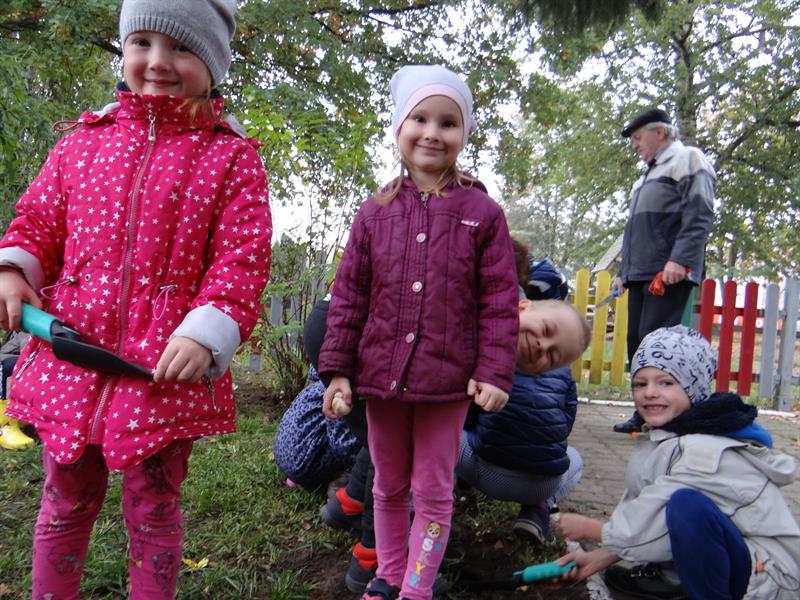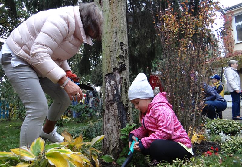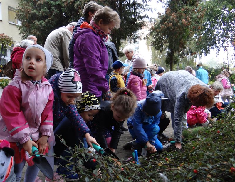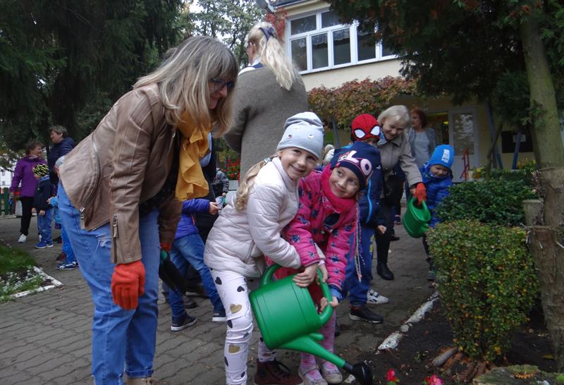 - Powiedziała: masz przyjść, sadzić ze mną, żeby przedszkole było ładne! Jak można się oprzeć tak czułemu zaproszeniu? - żartuje p. Anna. - Bardzo pozytywna inicjatywa. Z przyjemnością przyszłam się w nią włączyć. Choć zapomniałam o jednorazowych rękawiczkach. Na szczęście organizatorzy byli dobrze przygotowani. Cebulki, łopatki, grabki, konewki - wszystko jest.