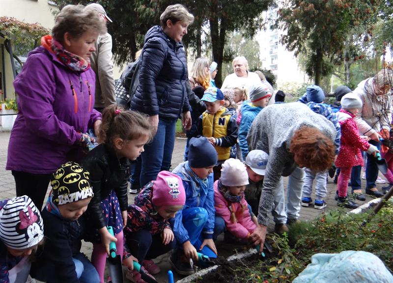 Społeczność Ekolandii już w ub. roku uczestniczyła w jesiennym sadzeniu chryzantem. Z tulipanami - w środę - była ich pierwsza przygoda. Konkretnie grup cztero- i pięciolatków, czyli „Słoneczek" i „Kwiatków" wraz z opiekunami, przede wszystkim dziadkami.