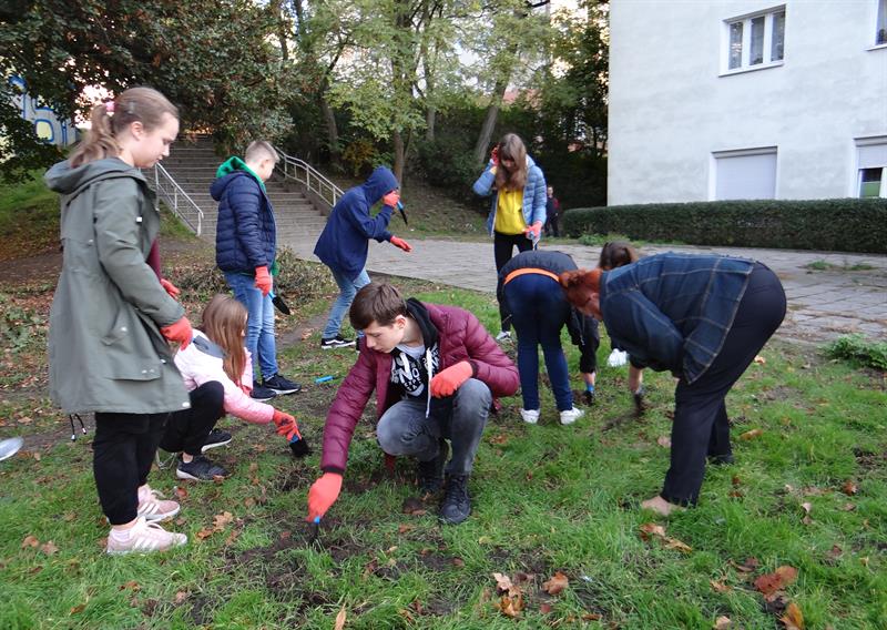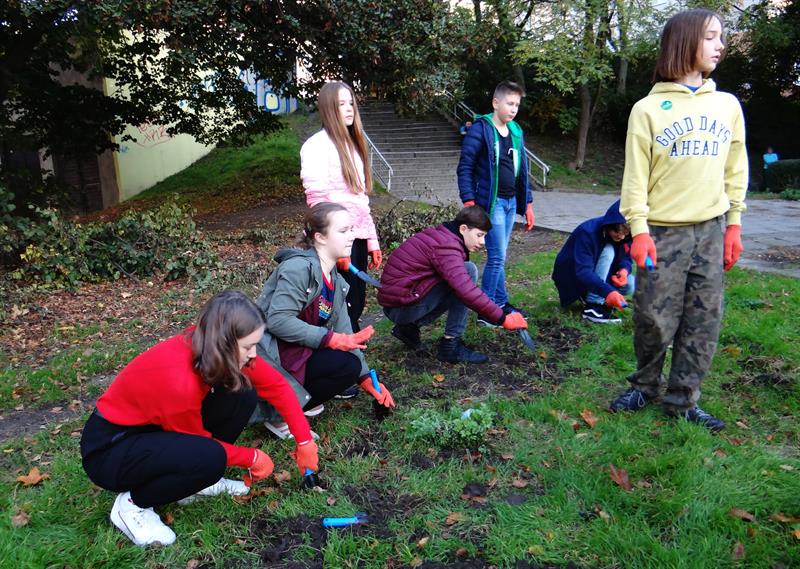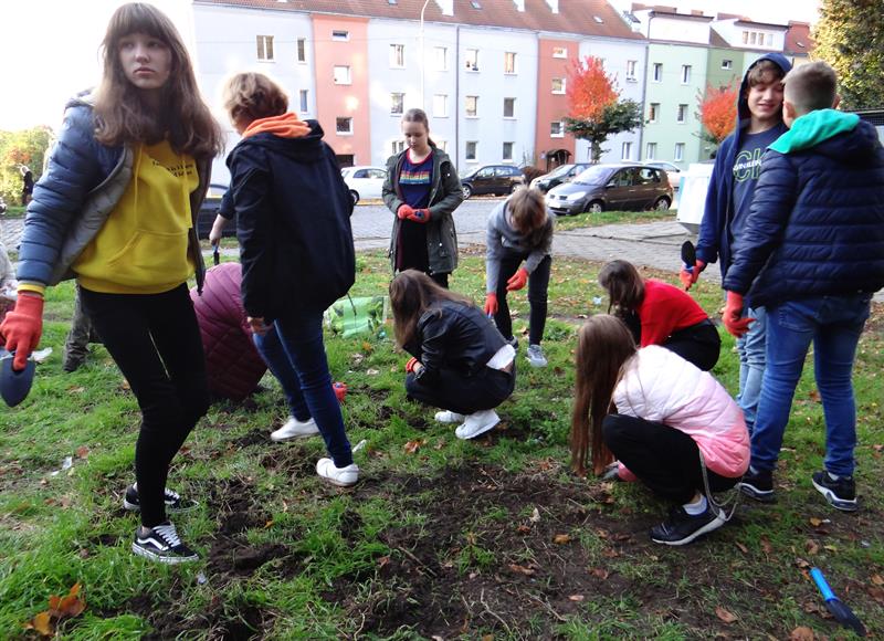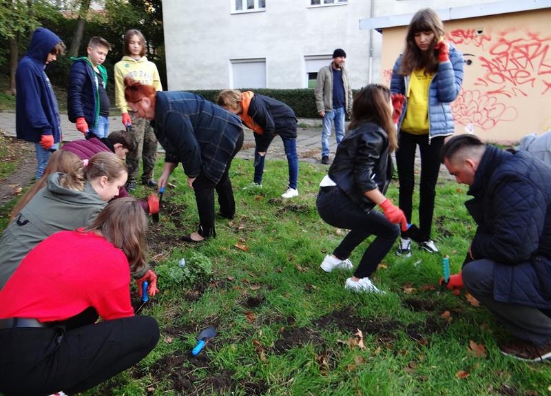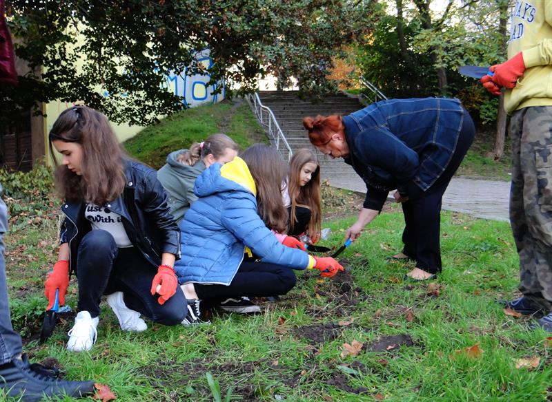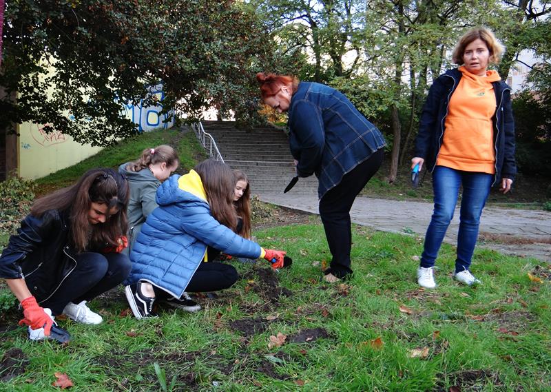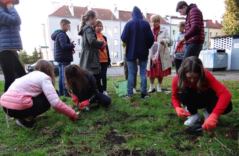 - Uczniowie naszej szkoły pochodzą z całego miasta, ale są też dzieci z miejscowości podszczecińskich gmin, a dzięki udziałowi w takich jak to przedsięwzięciach i dzięki takiemu wspólnemu działaniu mają okazję, by zrobić coś na rzecz lokalnej społeczności, a przez nie mieć poczucie większej identyfikacji z miejscami, które przecież niemal na co dzień mijają w drodze do szkoły i z powrotem do domu. Takie zaangażowanie w dbałość o otoczenie, w którym się uczą, na pewno w przyszłości zaprocentuje - uważa Krystyna Kubik, pedagog szkolny, współopiekunka samorządu szkolnego w SSP nr 1 STO przy ul. Tomaszowskiej oraz działającego w niej koła wolontariatu, która uczestniczyła w poniedziałkowy poranek w sadzeniu tulipanów z 10-osobową grupą uczniów klasy VIIb.