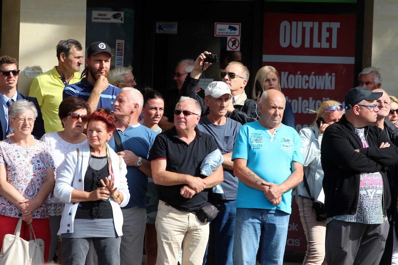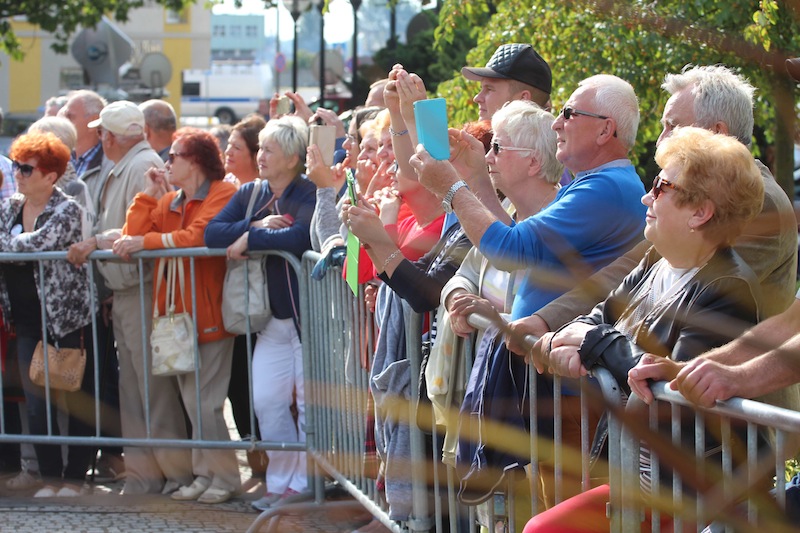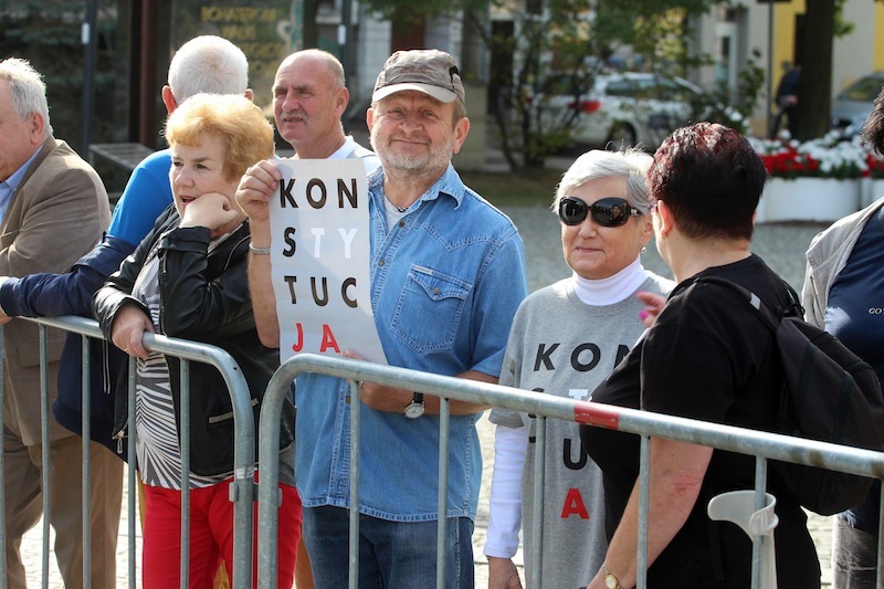 Przemówienia kolejnych oficjeli obserwowali mieszkańcy Świnoujścia. Wśród nich były osoby sprzeciwiające się sposobowi sprawowania rządów przez Prawo i Sprawiedliwość, z koszulkami z napisem „konstytucja”.